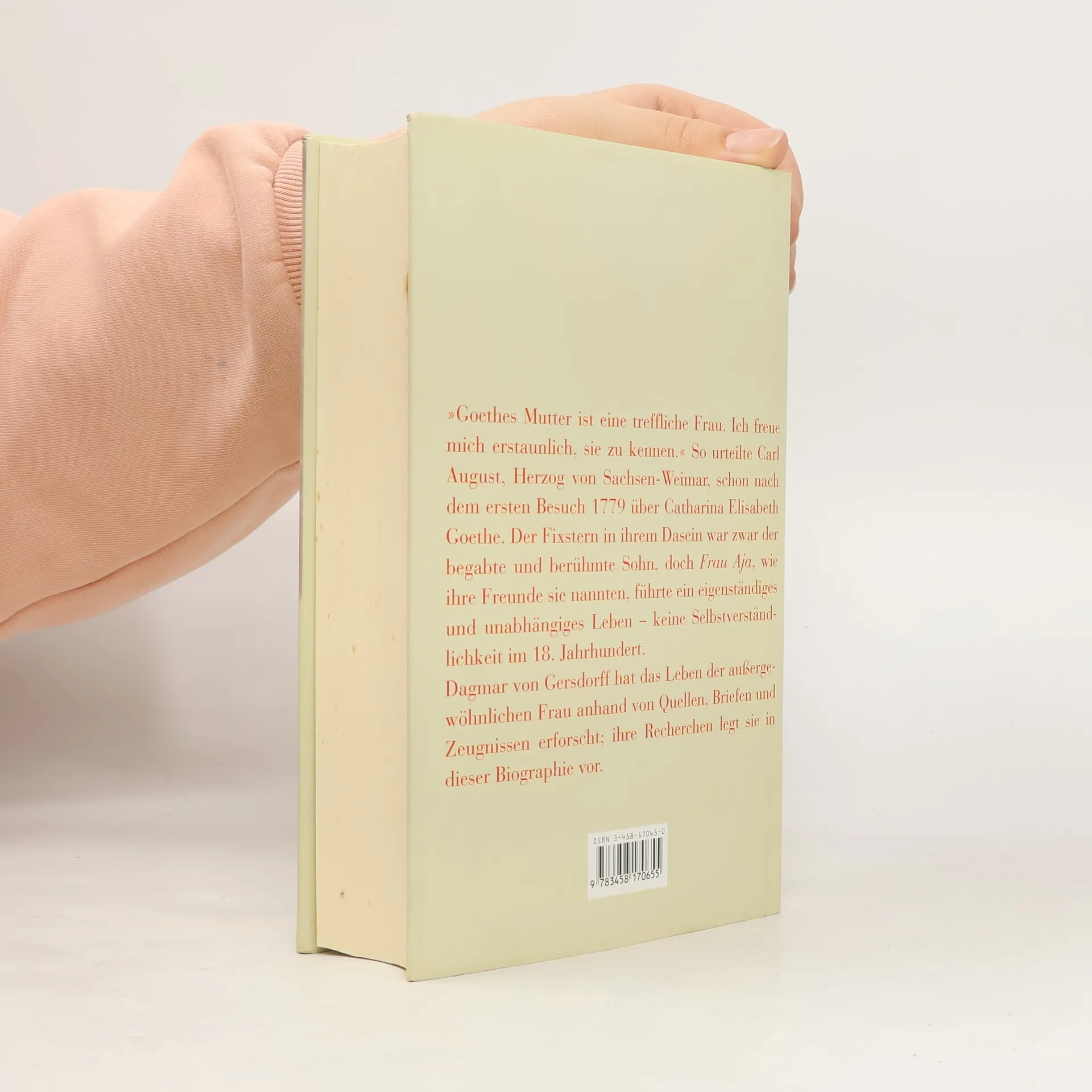 Catharina Elisabeth Goethe, Tochter des mächtigen Stadtschultheißen Johann Wolfgang Textor, heiratete den viel älteren Juristen Johann Caspar Goethe. Sie war eine liebevolle Mutter, die ihrem Sohn Johann Wolfgang, von seiner Mutter zärtlich als „Wölfchen“ bezeichnet, Fürsorge und Unterstützung zukommen ließ. Ihre Haushaltsbücher dokumentieren nicht nur die Ausgaben für das tägliche Leben, sondern auch ihre liebevollen Gesten, wie das Schenken von Geld und Geschenken an ihren Sohn. Goethe erkannte in seinen Erinnerungen die „brillante“ Erzählkunst seiner Mutter und die Ähnlichkeit zwischen ihnen. Catharina Elisabeth, von Freunden „Frau Aja“ genannt, führte ein selbstbestimmtes Leben, gründete einen Literaturkreis, spielte leidenschaftlich Klavier und war eine begeisterte Schachspielerin. Nach dem Tod ihres Mannes 1782 begann sie mit fünfzig Jahren ein neues Leben und fand Freude in einer Freundschaft mit dem Schauspieler Karl Ferdinand Unzelmann. Trotz der Enttäuschungen über die seltenen Besuche ihres berühmten Sohnes bewahrte sie ihre Lebensfreude und folgte dem Grundsatz, den besten Platz im Leben zu wählen und zu behaupten. Dagmar von Gersdorff erforscht in dieser Biographie das außergewöhnliche Leben von Catharina Elisabeth Goethe und stützt sich dabei auf zahlreiche Quellen, darunter unveröffentlichte Dokumente und Haushaltsbücher.