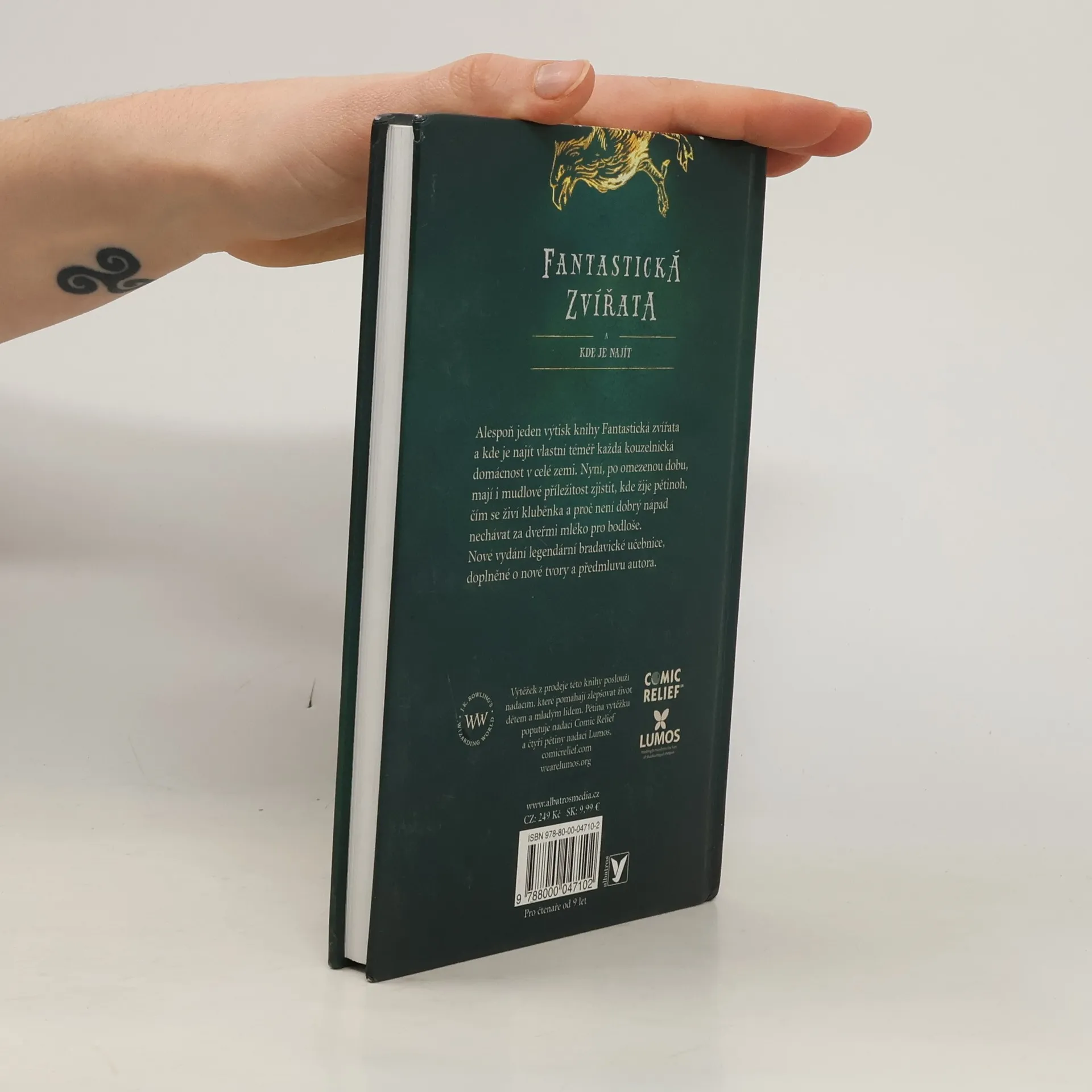 Alespoň jeden výtisk knihy Fantastická zvířata a kde je najít vlastní téměř každá kouzelnická domácnost v celé zemi. Nyní, po omezenou dobu, mají i mudlové příležitost zjistit, kde žije pětinoh, čím se živí kluběnka a proč není dobrý nápad nechávat za dveřmi mléko pro bodloše. Tentokrát s novou obálkou i novými ilustracemi.