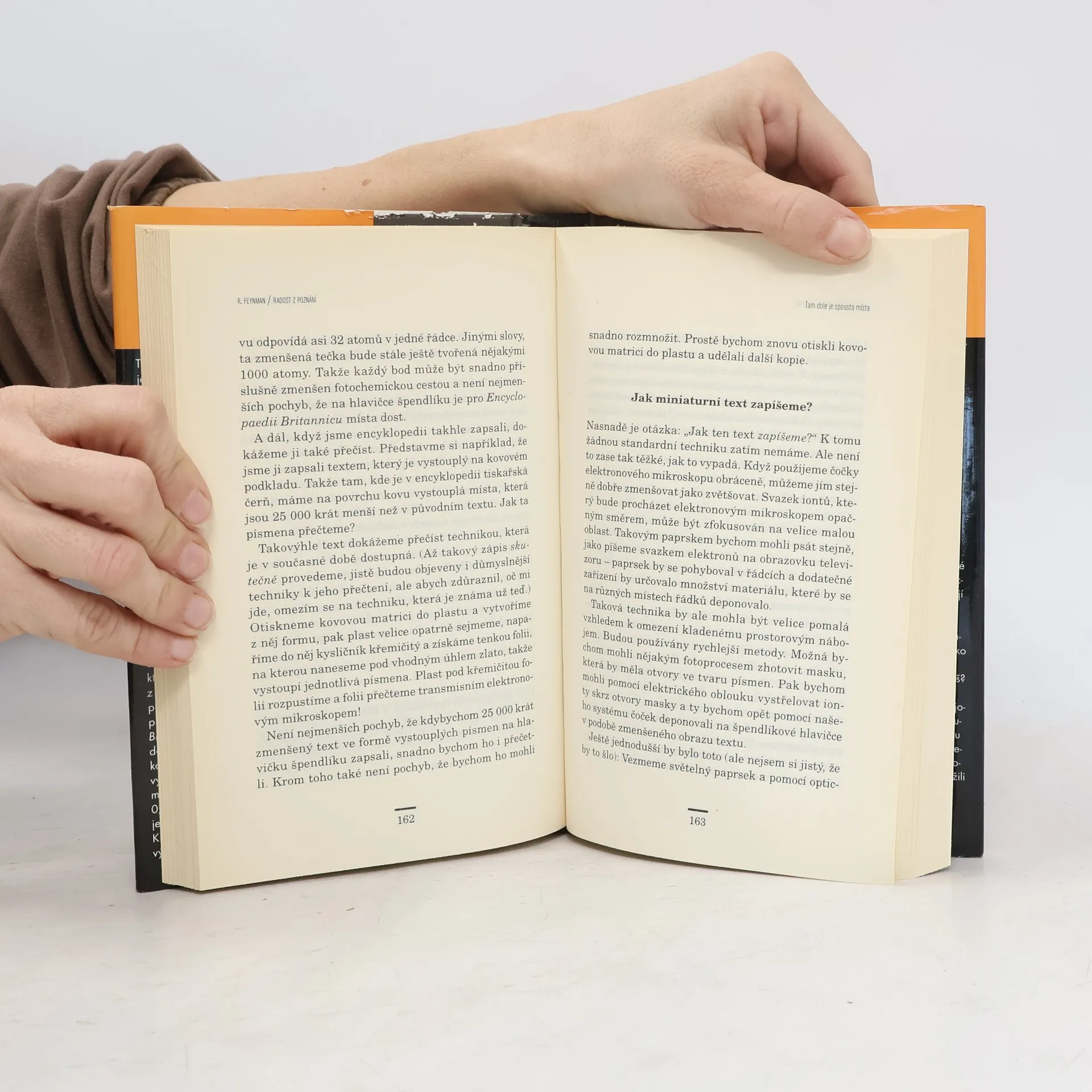 Třináct esejů a rozhovorů s Richardem Feynmanem, jedním z největších teoretických fyziků, nositelem Nobelovy ceny (1965), amatérským malířem a hudebníkem, vynikajícím člověkem a myslitelem, zahrnují široký okruh témat od vzpomínek na práci na atomové bombě za 2. světové války, vizionářský esej (1955!) o budoucí miniaturizaci elektroniky, přes objasnění tragédie kosmické lodě Challenger (1986) až po obecné úvahy o hodnotě vědy, jejím vztahu ke kultuře a náboženství a vlivu na společnost vůbec. Přeložil Jan Klíma.