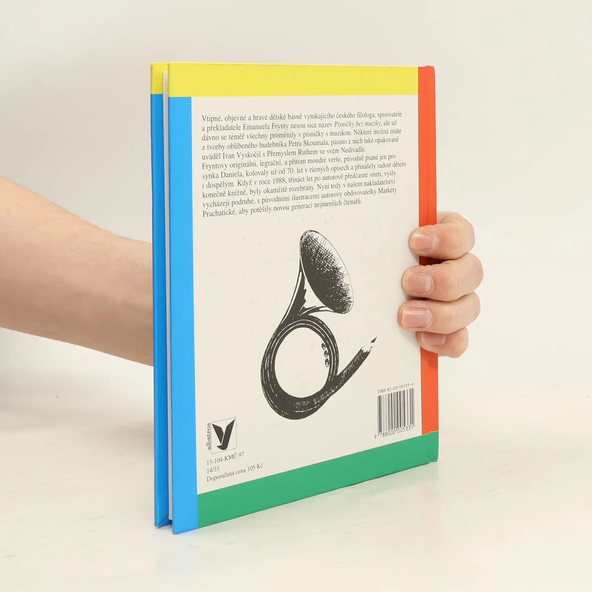 Vtipné, objevné a hravé dětské básně vynikajícího českého filologa, spisovatele a překladatele Emanuela Frynty nesou sice název Písničky bez muziky, ale už dávno se téměř všechny proměnily v písničky s muzikou. Fryntovy originální, legrační a přitom moudré verše, původně psané jen pro synka Daniela, kolovaly už od 70. let v různých opisech a přinášely radost dětem i dospělým.