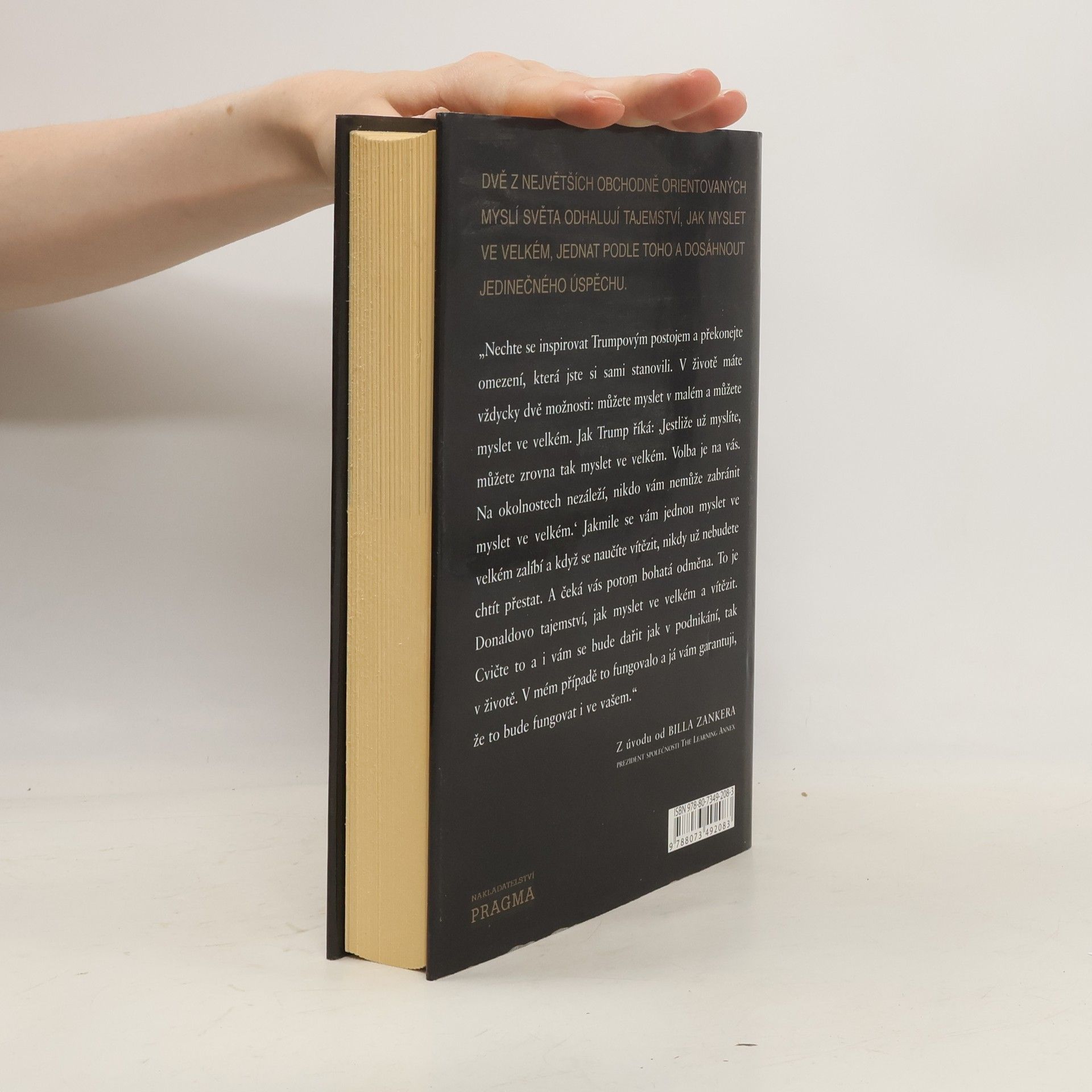 Donald J. Trump je ikona a dokonalý příklad amerického úspěchu. Hvězda pořadu The Apprentice a developer jedněch z nejprestižnějších staveb na světě. Bill Zanker založil firmu The Learning Annex s pěti tisíci dolary. Postupně z ní vytvořil firmu s příjmem pěti milionů dolarů ročně. To bylo předtím, než se potkal s Donaldem Trumpem. O třicet měsíců později, když se Zanker naučil myslet ve velkém, začala jeho firma The Learning Annex vydělávat prodejem sto milionů ročně. A rozrůstá se dál. Oba představují živé příklady toho, jak myslet ve velkém a jak poznat, kdy je třeba agresivně podpořit své názory, a to bez ohledu na to, co by mohli vaši kritikové nebo oponenti říci. To vám může napomoci dosáhnout co největších osobních a profesních úspěchů.