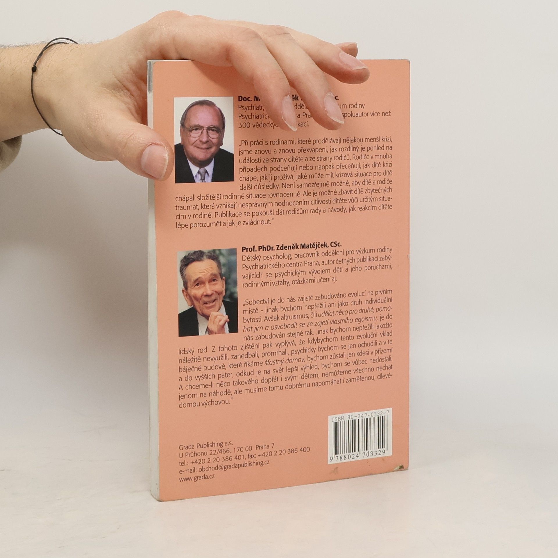 Psychologický pohled na trápení, která dětem způsobují konflikty a problematické situace v rodině. Autoři - renomovaní čeští odborníci zabývající se psychologií dítěte a rodinnými vztahy - se snaží ukázat nejčastější krizové situace v rodině, které přinášejí dětem trápení a způsobují dětská traumata. Rozvod, nemoc, úmrtí člena rodiny, příchod nového partnera či nevlastních sourozenců do rodiny, ale také nevěra rodičů, žárlivost, nesoulad v rodině, případně i na první pohled celkem obyčejné stěhování - to vše se dotýká dětské psychiky a dítě se s tím musí nějak vypořádat. Kniha popisuje tyto situace z pohledu dítěte, dává je do širších souvislostí s vývojovou psychologií dítěte a dokládá příklady z praxe včetně dětských kreseb, které mnohdy jasně vysvětlí to, co dítě nedokáže slovy popsat. Snaha porozumět dítěti v nelehkých situacích, do kterých se dostává "vinou" svých nejbližších a zajistit co nejlepší cestu k jejich nápravě, to je cílem této publikace. Psychologické výklady doplňují konkrétní rady pro rodiče a osoby pečující o děti. Velmi kvalitní, zajímavá kniha, odborné informace jsou podávány srozumitelně i pro laika.... celý text