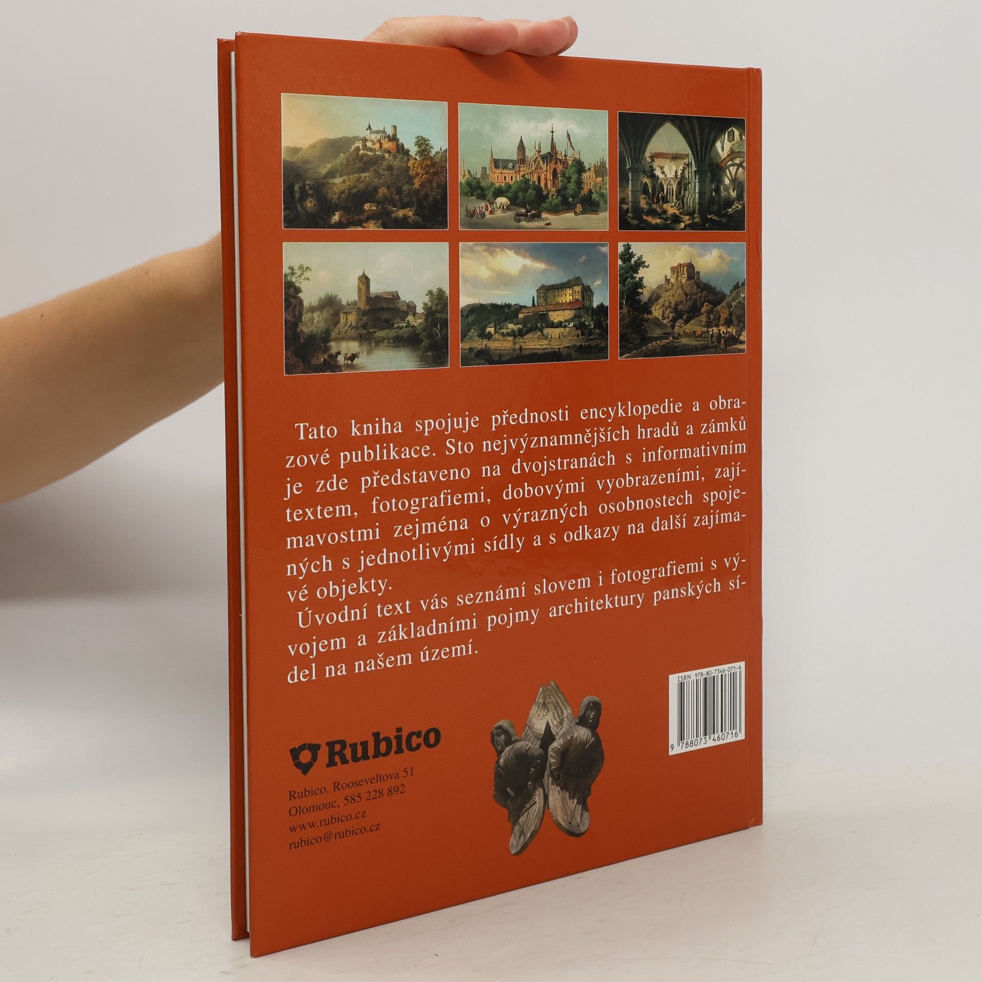 V množství našich dochovaných stavebních památek patří hrady a zámky nepochybně k nejatraktivnějším. Cílem této knihy je zaplnit existující mezeru a nabídnout titul, který spojuje přednosti populární encyklopedie a obrazové publikace. Čtenář zde najde sto nejvýznamnějších hradů a zámků na dvojstranách s informativním textem a několika fotografiemi. Tento základní soubor doplňují další objekty, kterým je věnována stručnější informace v samostatném sloupci. V dalších rámečcích je zařazeno množství dobových vyobrazení a také řada zajímavostí, zejména o výrazných osobnostech spojených s jednotlivými sídly. Stručný úvodní text seznamuje čtenáře slovem i fotografiemi alespoň v hrubých rysech s vývojem a základními pojmy architektury panských sídel na našem území.