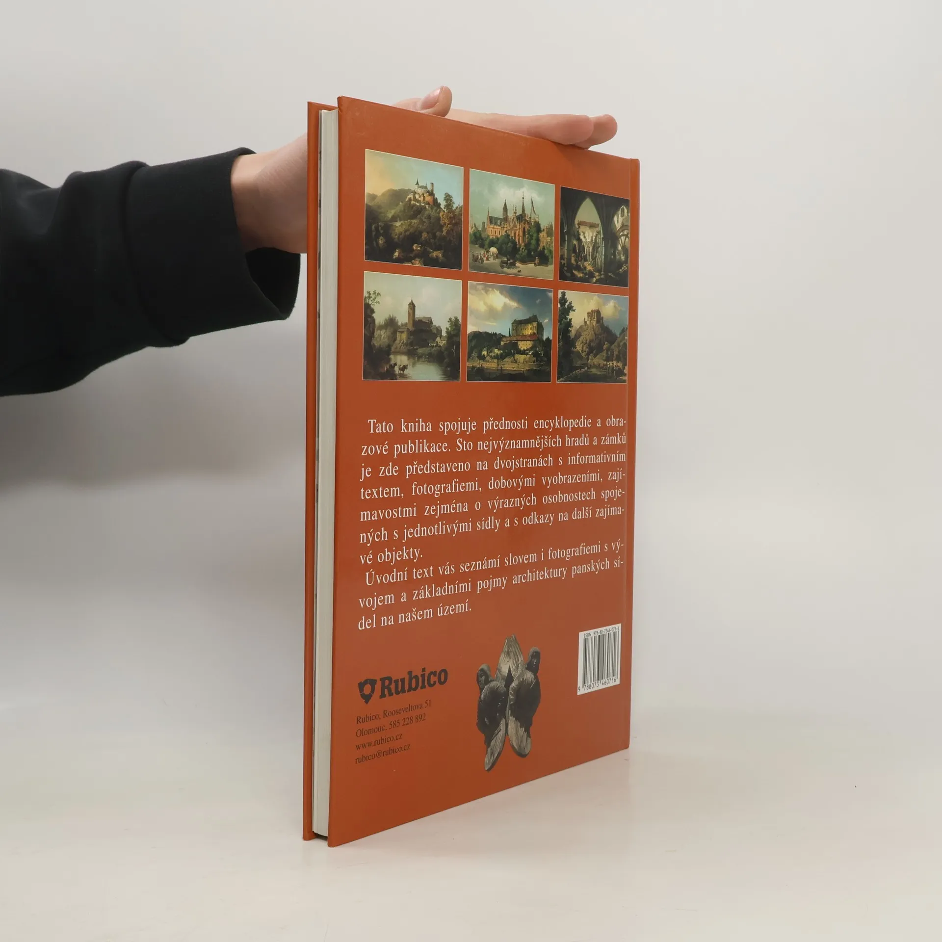 V množství našich dochovaných stavebních památek patří hrady a zámky nepochybně k nejatraktivnějším. Cílem této knihy je zaplnit existující mezeru a nabídnout titul, který spojuje přednosti populární encyklopedie a obrazové publikace. Čtenář zde najde sto nejvýznamnějších hradů a zámků na dvojstranách s informativním textem a několika fotografiemi. Tento základní soubor doplňují další objekty, kterým je věnována stručnější informace v samostatném sloupci. V dalších rámečcích je zařazeno množství dobových vyobrazení a také řada zajímavostí, zejména o výrazných osobnostech spojených s jednotlivými sídly. Stručný úvodní text seznamuje čtenáře slovem i fotografiemi alespoň v hrubých rysech s vývojem a základními pojmy architektury panských sídel na našem území.