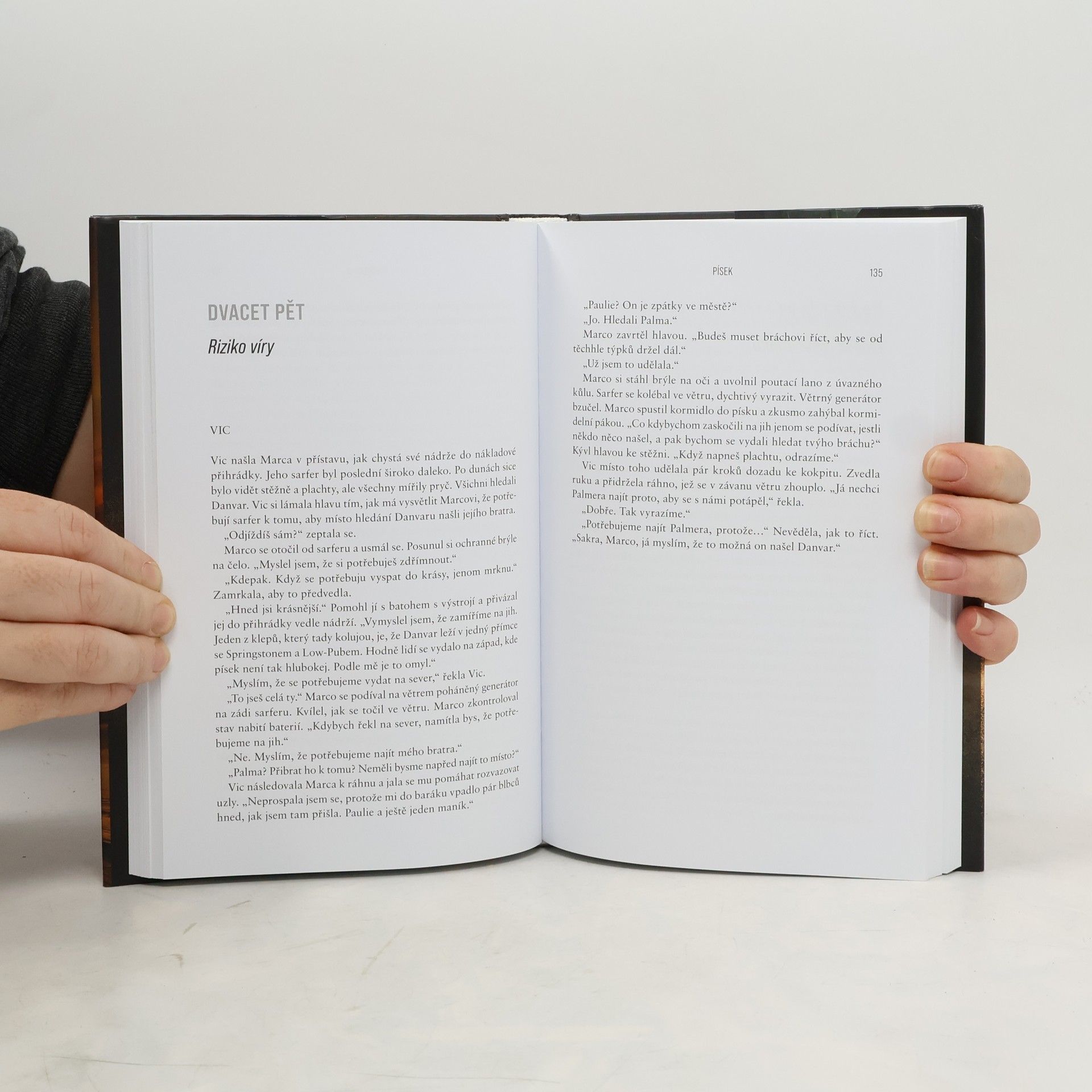 Ztracený otec. Opuštěná rodina. Zapomenutý svět. Vítejte v Písku, dalším apokalyptickém thrilleru Hugha Howeyho, autora fenomenální bestsellerové trilogie Silo, Turnus a Prach. Než se do něj vnoříte, pořádně se nadechněte – může to být naposledy. Starý svět byl zasypán. Nový teď existuje jen na vršcích pohyblivých dun. V zemi skučícího větru a pekelného, všudypřítomného písku se čtveřice sourozenců pokouší dát znovu dohromady svou rodinu. Jejich otec pracoval jako písečný potápěč, jeden z těch, kdo z hlubin pouště přináší pozůstatky starého světa, které lidem pomáhají přežít. Ale otec zmizel. A svět, ve kterém své děti zanechal, nejspíš brzy zmizí taky…