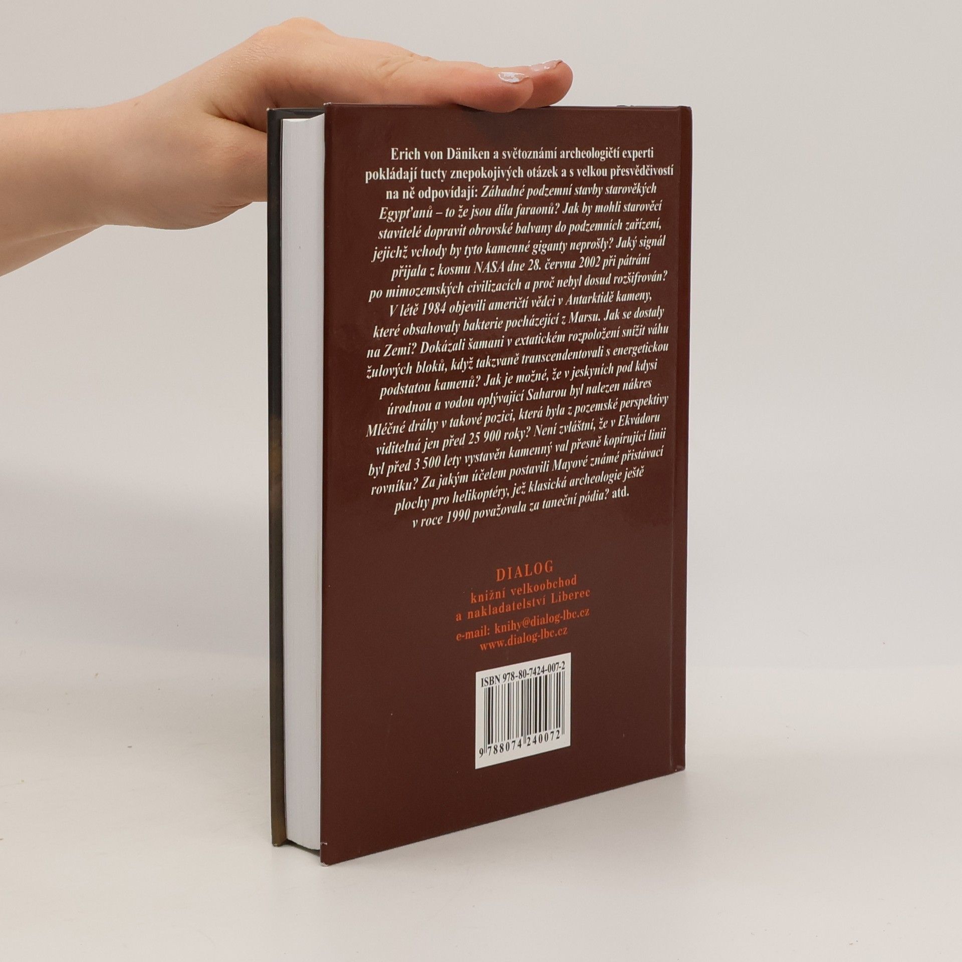 Podtitul: Dějiny bez dogmat Erich von Däniken a světoznámí archeologičtí experti pokládají tucty znepokojivých otázek a s velkou přesvědčivostí na ně odpovídají: Záhadné podzemní stavby starověkých Egypťanů - to že jsou díla faraonů? Jak by mohli starověcí stavitelé dopravit obrovské balvany do podzemních zařízení, jejichž vchody by tyto kamenné giganty neprošly? Jaký signál přijala z kosmu NASA dne 28. června 2002 při pátrání po mimozemských civilizacích a proč nebyl dosud rozšifrován? V létě 1984 objevili američtí vědci v Antarktidě kameny, které obsahovaly bakterie pocházející z Marsu. Jak se dostaly na Zemi? Dokázali šamani v extatickém rozpoložení snížit váhu žulových bloků, když takzvaně transcendentovali s energetickou podstatou kamenů? Jak je možné, že v jeskyních pod kdysi úrodnou a vodou oplývající Saharou byl nalezen nákres Mléčné dráhy v takové pozici, která byla z pozemské perspektivy viditelná jen před 25 900 roky? Není zvláštní, že v Ekvádoru byl před 3500 lety vystavěn kamenný val, který přesně kopíruje linii rovníku? Za jakým účelem postavili Mayové známé přistávací plochy pro helikoptéry, jež klasická archeologie ještě v roce 1990 považovala za taneční pódia? ...