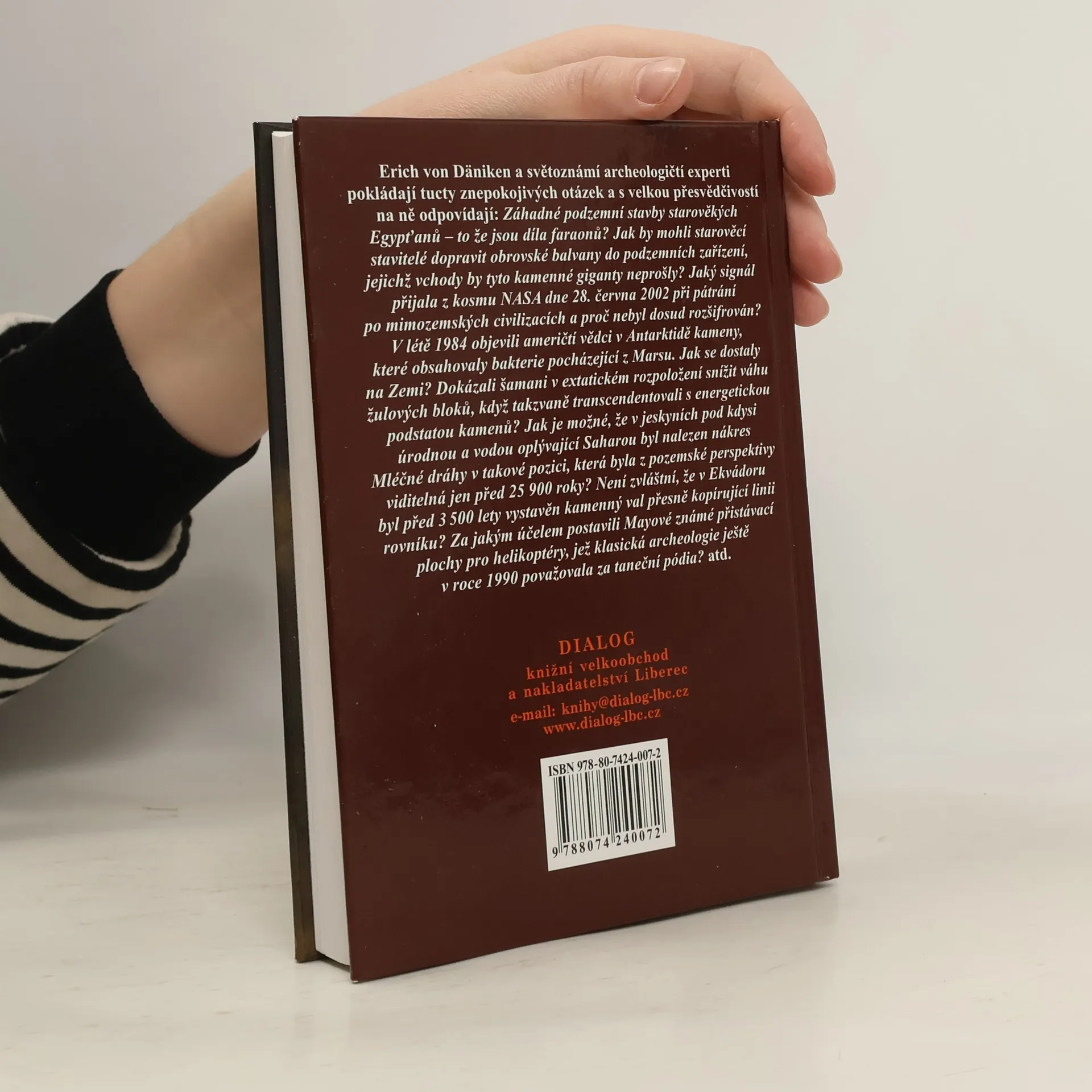 Podtitul: Dějiny bez dogmat Erich von Däniken a světoznámí archeologičtí experti pokládají tucty znepokojivých otázek a s velkou přesvědčivostí na ně odpovídají: Záhadné podzemní stavby starověkých Egypťanů - to že jsou díla faraonů? Jak by mohli starověcí stavitelé dopravit obrovské balvany do podzemních zařízení, jejichž vchody by tyto kamenné giganty neprošly? Jaký signál přijala z kosmu NASA dne 28. června 2002 při pátrání po mimozemských civilizacích a proč nebyl dosud rozšifrován? V létě 1984 objevili američtí vědci v Antarktidě kameny, které obsahovaly bakterie pocházející z Marsu. Jak se dostaly na Zemi? Dokázali šamani v extatickém rozpoložení snížit váhu žulových bloků, když takzvaně transcendentovali s energetickou podstatou kamenů? Jak je možné, že v jeskyních pod kdysi úrodnou a vodou oplývající Saharou byl nalezen nákres Mléčné dráhy v takové pozici, která byla z pozemské perspektivy viditelná jen před 25 900 roky? Není zvláštní, že v Ekvádoru byl před 3500 lety vystavěn kamenný val, který přesně kopíruje linii rovníku? Za jakým účelem postavili Mayové známé přistávací plochy pro helikoptéry, jež klasická archeologie ještě v roce 1990 považovala za taneční pódia? ...