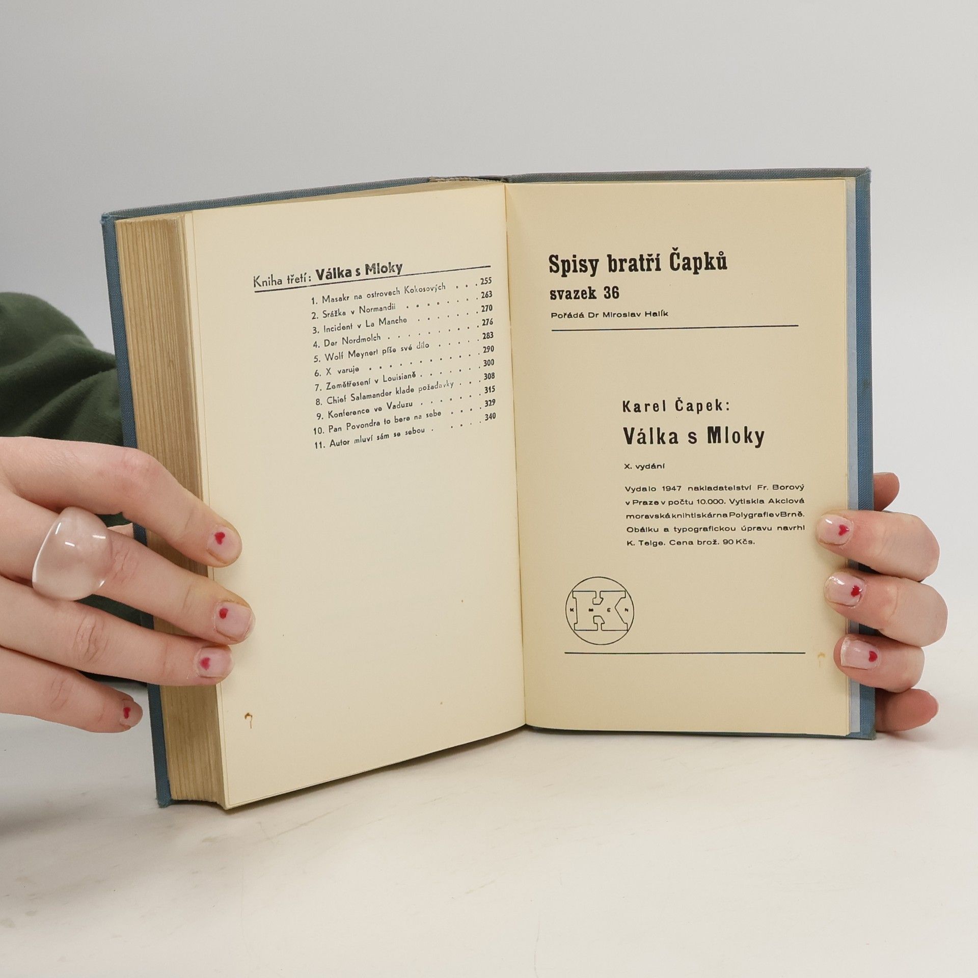 Světově proslulý utopistický román, kterým Čapek v roce 1936 poukázal na nebezpečí rozmachu fašismu a reálnou hrozbu 2. světové války. V Tichém oceánu objevil starý námořní kapitán van Toch, původem Čech, podivuhodně učenlivé mloky podobné člověku. Vládci jednotlivých zemí začaliokamžitě zneužívat a využívat mloky ve svůj prospěch, jak třeba k lovu perel, tak i jako pracovní sílu při podmořských stavbách. Mloci dostali i zbraně na ochranu proti žralokům a posléze se naučili i lidské řeči. Potřebovali však stále větší prostor a tak nakonec vyhlašují lidstvu válku a hrozí je vyhladit zbraněmi, které jim lidé sami dali. Záhubu lidské civilizace odvrátí až šovinismus, který panuje nejen mezi lidmi, ale i mezi mloky a který jejich útočnou jednotu rozleptá.