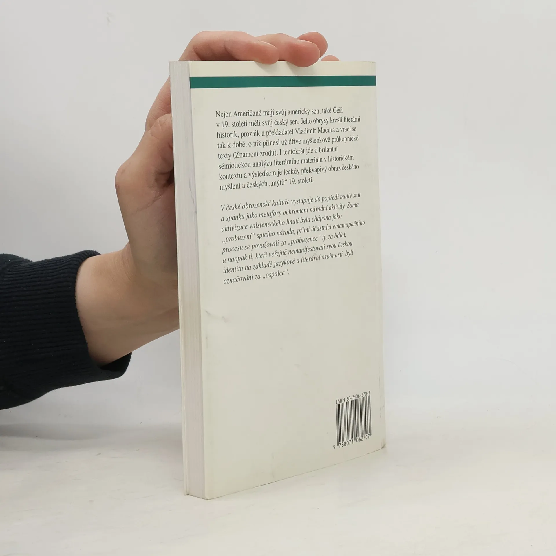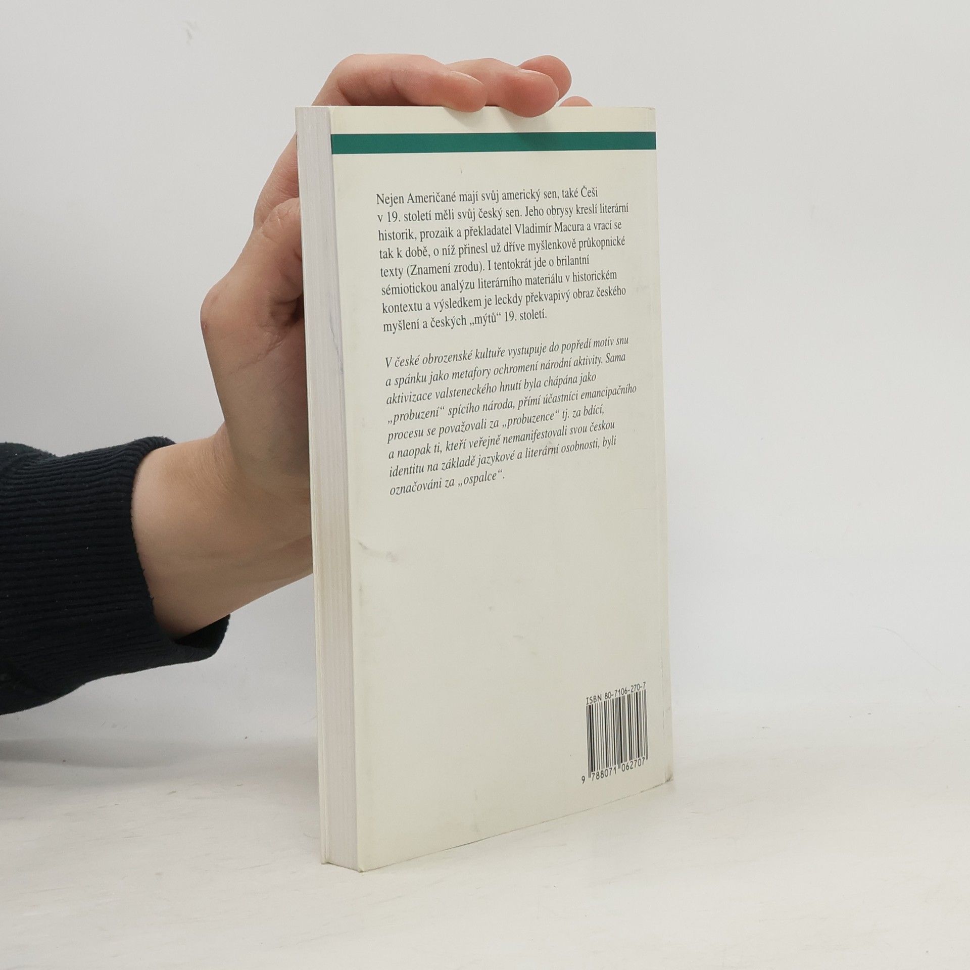 Současné vnímání české národní identity a její zdroje v "českém mýtu" 19. stol. Představy, symboly a iluze, s jejichž pomocí se v době obrozenecké vymezoval moderní český národ. Motiv snu jako součást "probuzení národa". Určitý skepticismus, který posouvá hodnotový systém české obrozenecké společnosti do oblasti snové, ale vztahuje se i k některým současným tendencím.
