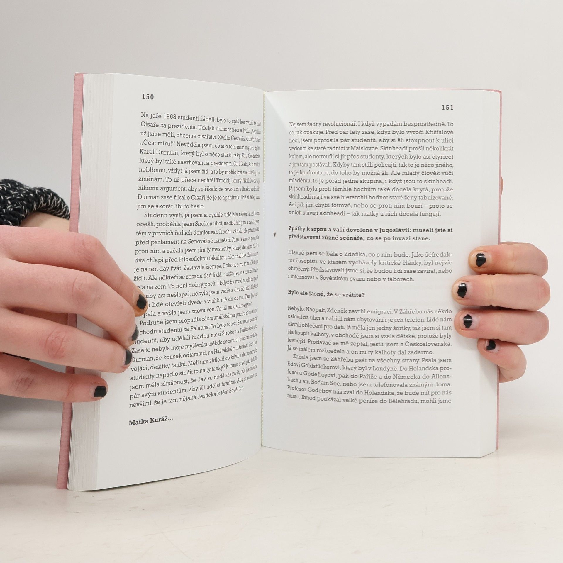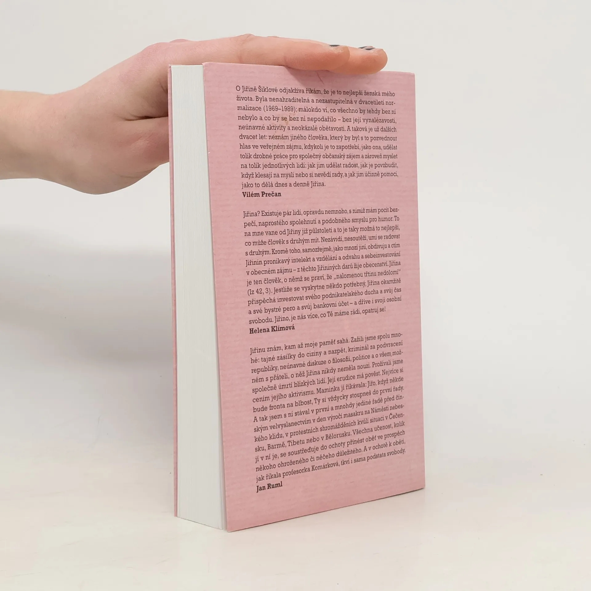 Knižní rozhovor s Jiřinou Šiklovou (1935) supluje memoáry, které uznávaná socioložka a pedagožka zřejmě nikdy nenapíše. Víc než minulost ji totiž zajímají přítomné okamžiky naší společnosti, které břitce a s nadhledem neustále komentuje. Její vzpomínky jsou přitom košaté, detailní a glosátorské. Šiklová v knize podrobně líčí ilegální kurýrní kanál, přes který se do Československa v době normalizace dostávaly exilové časopisy a v zahraničí vydané knihy doma zakázaných autorů. Šiklová si jako významná spojka mezi disidenty a exilem počínala velmi neohroženě. Rozvinula k dokonalosti své konspirativní schopnosti, takže zůstala až do zatčení v roce 1981 neodhalena. Rozhovor s Jiřinou Šiklovou je životopisným líčením sebeironické intelektuálky, která každé své rozhodnutí zpětně analyzuje: svůj vstup do KSČ, roli při Pražském jaru, politickou perzekuci, kurýrní práci, roční vězení i porevoluční aktivity včetně založení Genders Studies. Stranou nezůstalo ani její soukromí, které je, jak se ukazuje, často skrytou motivací významných rozhodnutí