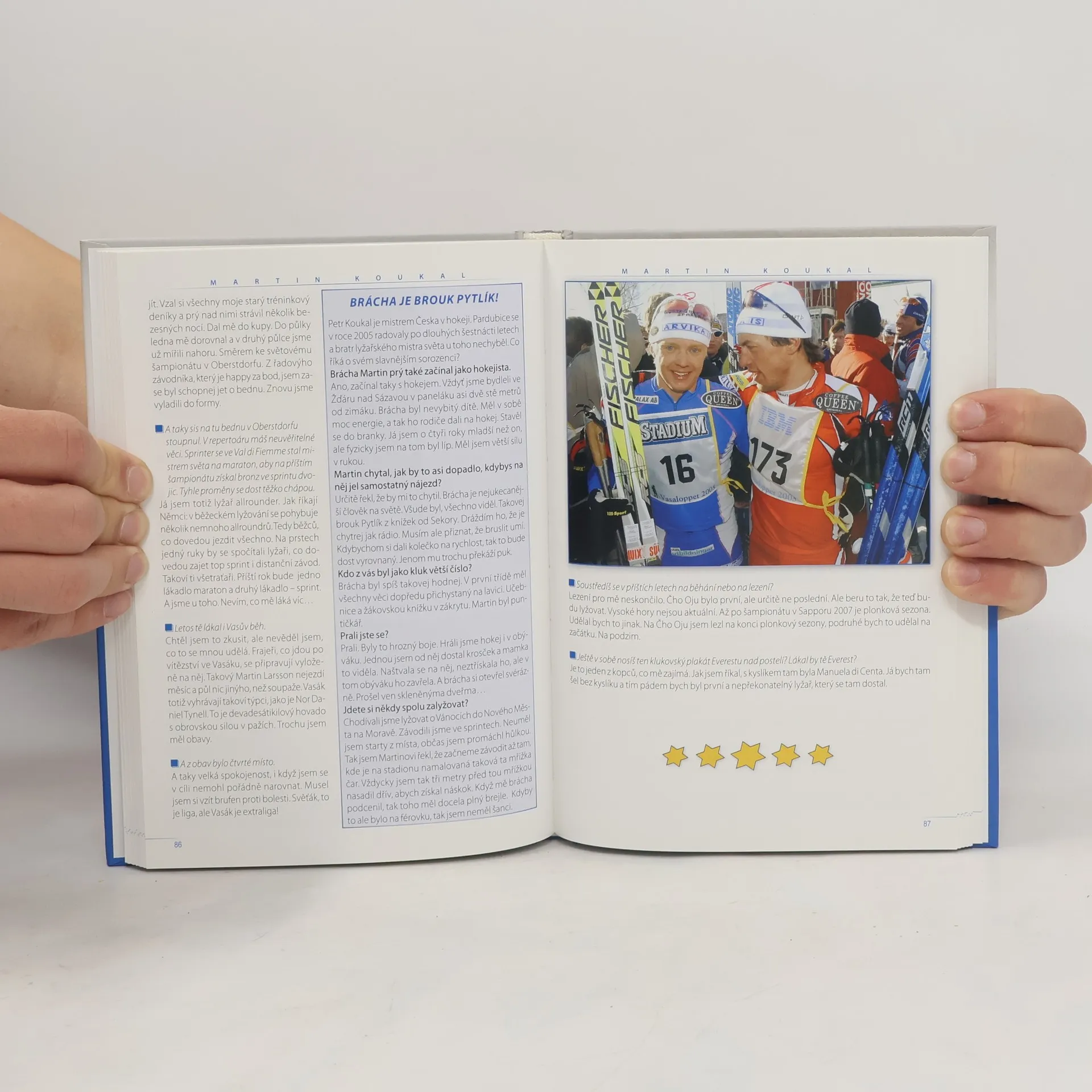 Publikace představuje formou původních, neformálních rozhovorů a medailonků nejvýznamnější sportovní osobnosti ČR. Mezi čtrnácti "hvězdami" jsou např. nejlépe placený hokejista kanadsko - americké NHL, vítěz z Nagana, mistr světa J. Jágr, nejlepší fotbalista Evropy 2003 P. Nedvěd, nejlepší střelec české fotbalové reprezentace J. Koller, olympijský vítěz v akrobatickém lyžování A. Valenta, mistři světa v lyžování K. Neumannová a M. Koukal, ... Zkušení autoři, redaktoři deníku Sport využívají svých letitých zkušeností (účast na OH aj.) a nahlížejí i do soukromí špičkových sportovců.