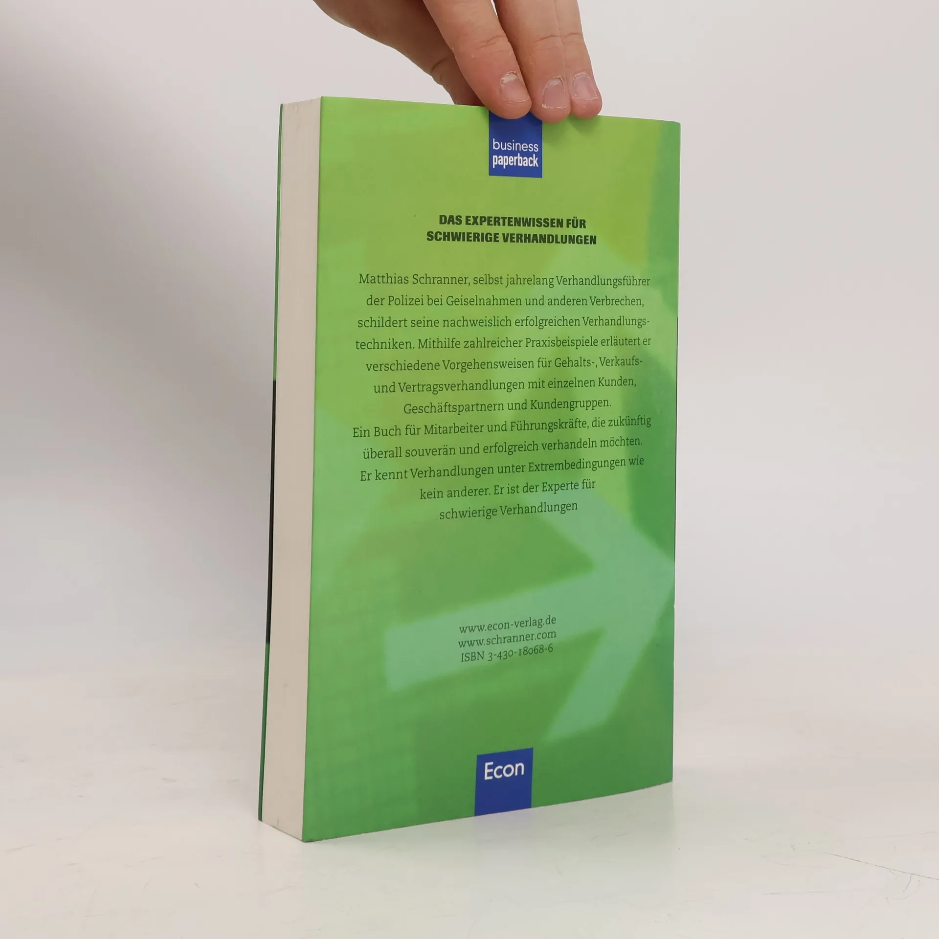 Anhand zahlreicher Praxisbeispiele aus dem privaten und beruflichen Bereich werden verschiedene Techniken erläutert, wie man erfolgreich in Gehalts-, Verkaufs- und Vertragsverhandlungen vorgeht. Denn fast jeden Tag führen wir Verhandlungen, welche oft einen unbefriedigenden Verlauf nehmen: weil wir gestreßt sind, weil wir mit aggressivem oder unfairem Verhalten konfrontiert sind oder weil uns die Situation schlicht überfordert. Dieses Buch zeigt jedoch, wie durch gründliche Vorbereitung, eine ausgesuchte Strategie und zielgerichtete Taktik beide Seiten zu einem zufriedenstellenden Ergebnis gelangen. Wenn Sie Herrn Schranner als Redner buchen möchten, kontaktieren Sie bitte die Econ Referenten-Agentur.
