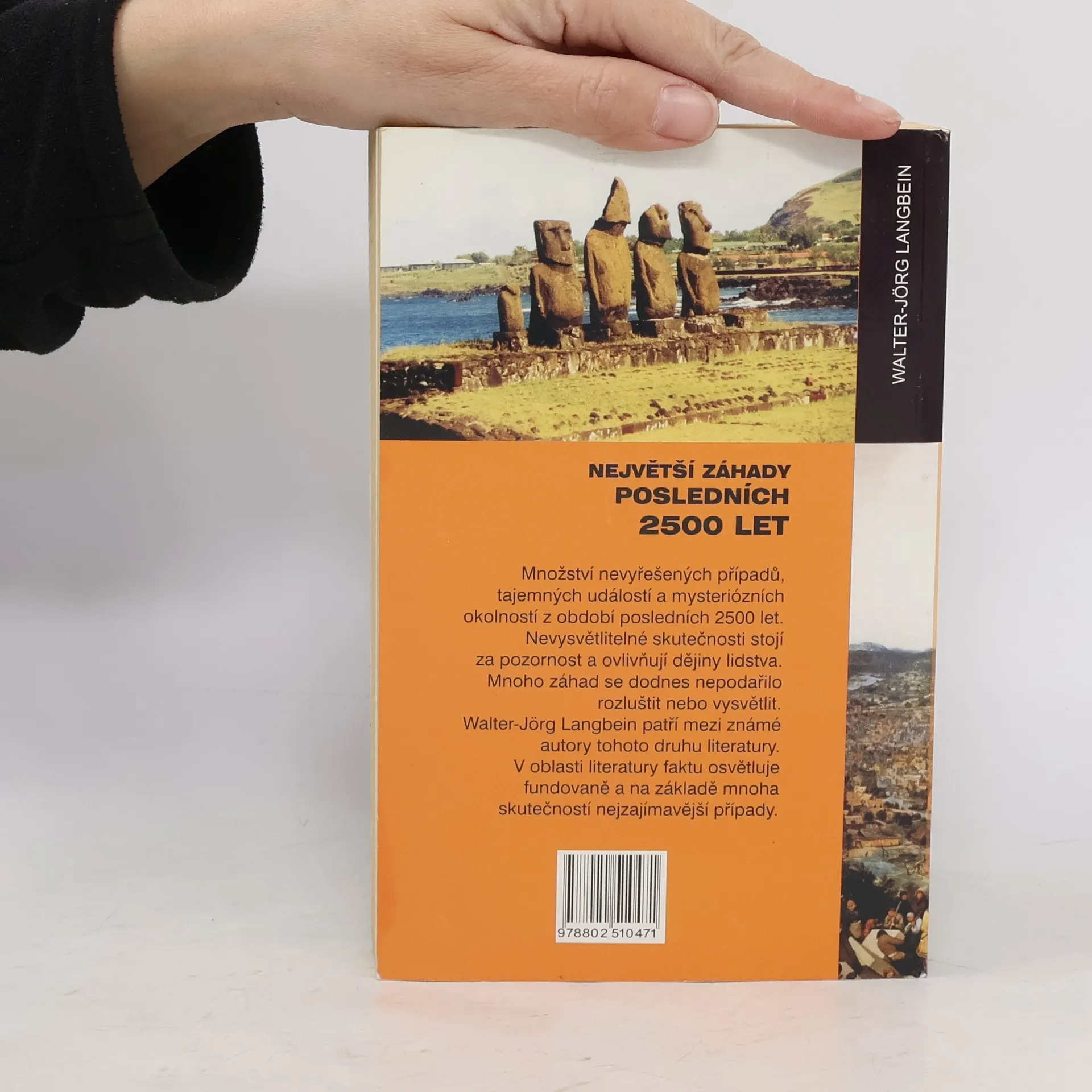 Množství nevyřešených případů, tajemných událostí a mysteriózních okolností z období posledních 2500 let. Nevysvětlitelné skutečnosti stojí za pozornost a ovlivňují dějiny lidstva. Mnoho záhad se dodnes nepodařilo rozluštit nebo vysvětlit... I. Dotisk v roce 2007, se stejným ISBN Obsah: Úvod Předmluva Ericha von Dänikena Předmluva autora Kosmické lodě proroka Ezechiela Babylonská věž Cesty Pythea z Massilie Kam zmizel Kolos rhódský? Záhadné obrazce v Peru Nejstarší počítač? Kdo skutečně zapálil Řím? Kdo vybudoval zeď v Zimbabwe? Biskup St. Denis a další bezhlaví mládenci Podivné sklovité kameny Kdo byl král Artuš? Kauza "Nessie" Jednorožec - symbol a pohádková bytost Borobudur - chrámový vrch na Jávě Význam Bílých koní Masová hysterie na přelomu tisíciletí Skutečně existoval Pygmalion? Tajemný Velikonoční ostrov Stigmatizace - jaký je její původ? Nan Madol - zmizelý kontinent? Hrabě Drákula - vampír? Poklad Juana Valverdeho Bludný Holanďan a jiné lodě duchů Hrabě Saint-Germain Byl Napoleon otráven? Tajné poselství z Fatimy