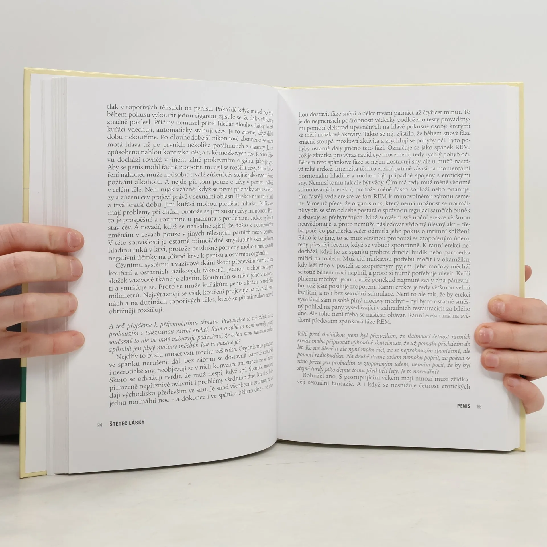 Kniha je určena nejen mužům, ale i ženám. Snaží se popsat mužskou sexualitu po stránce biologické i emocionální, nevyhýbá se však ani faktům z kulturních dějin. Hlavním tématem celé knihy je mužský pohlavní orgán, poeticky nazývaný štětec lásky, a jeho fungování. Text je koncipován formou dialogu mezi dvěma přáteli - novinářem a primářem andrologického a urologického oddělení jedné belgické kliniky. Nalezneme zde zevrubné informace o sexuálním a pohlavním životě muže, mužských postojích k partnerskému sexu, vývoji mužské identity, ale autoři neopomíjejí ani otázky zdraví či různých zdravotních komplikací dotýkajících se mužské sexuality.