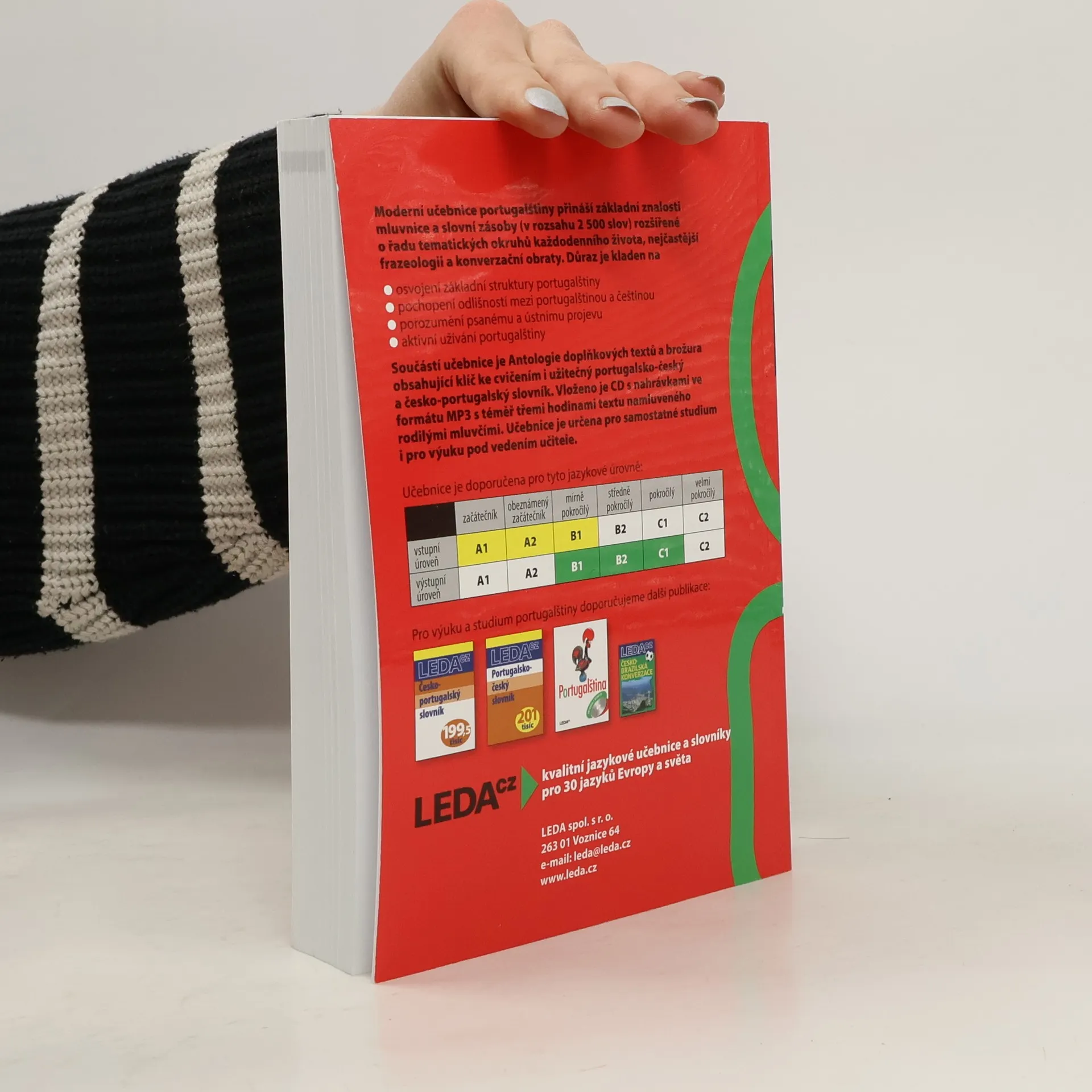 Moderní učebnice portugalštiny přináší základní znalosti mluvnice a slovní zásoby (v rozsahu 2 500 slov) rozšířené o řadu tématických okruhů každodenního života, nejčastější frazeologii a konverzační obraty. Důraz je kladen na - osvojení základní struktury portugalštiny - pochopení odlišností mezi portugalštinou a češtinou - porozumění psanému i ústnímu projevu - aktivní používání portugalštiny Součástí učebnice je Antologie doplňkových textů a brožura obsahující klíč ke cvičením i užitečný portugalsko-český a česko-portugalský slovník. Vloženo je CD s nahrávkami ve formátu MP3 s téměř třemi hodinami textu namluveného rodilými mluvčími. Učebnice je určena pro samostatné studium i pro výuku pod vedením učitele.