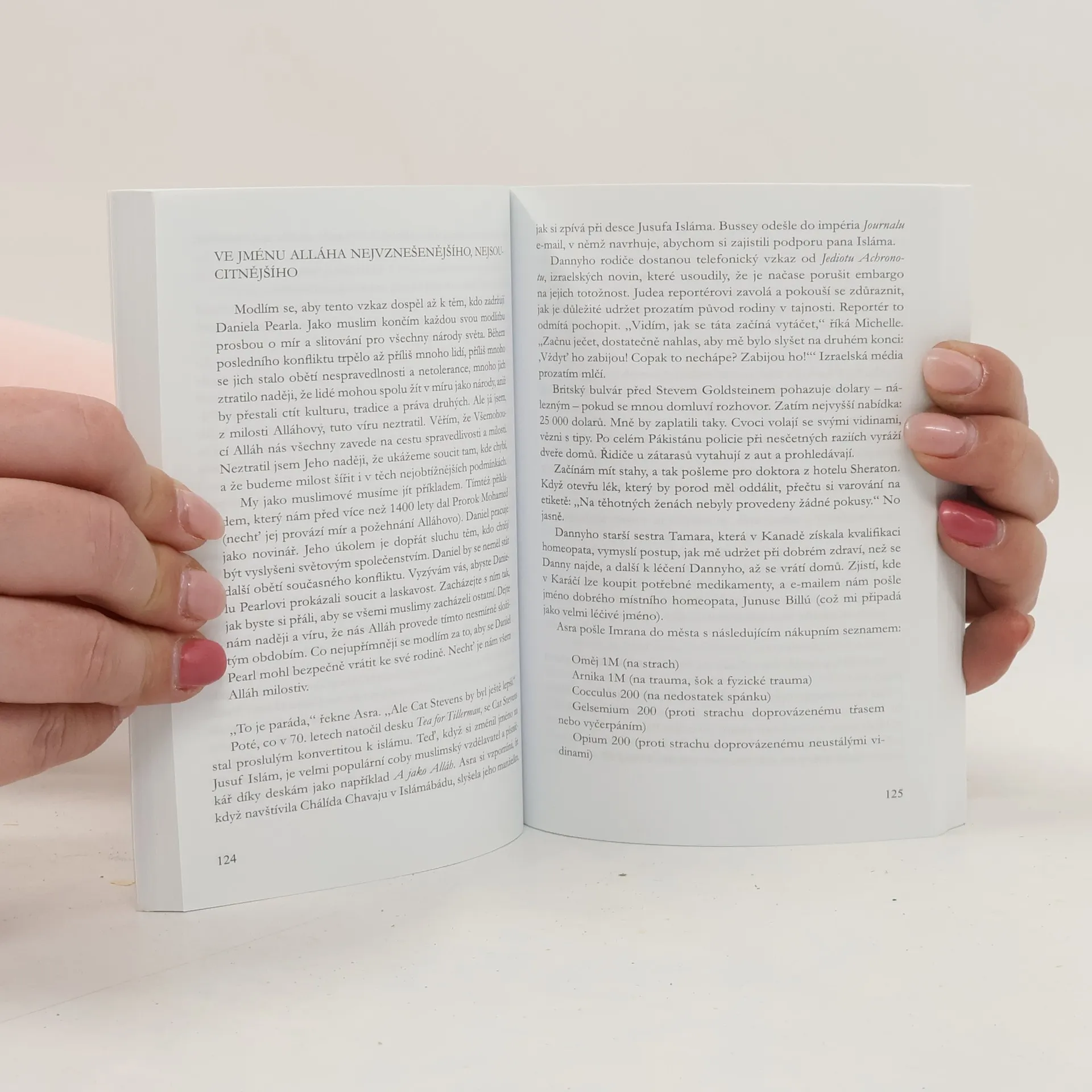 Příběh na pomezí beletrie a literatury faktu, který byl rovněž zfilmován, líčí okolnosti únosu, zorganizovaného muslimskou teroristickou skupinou. Mariane a její indická přítelkyně Asra spolupracují s týmem vyšetřovatelů ve snaze Daniela osvobodit. Jejich horečné úsilí sice nakonec vede k odhalení pachatelů, nikoli však k záchraně uneseného. V příběhu poznáváme řadu čestných, odhodlaných a schopných lidí různých vyznání a národnosti, kteří společně pracují na záchraně novináře a zároveň chrání jeho ženu. Poznáváme, že fanatická nenávist teroristů (a mnohdy i prostých lidí Východu) je živena náboženskou propagandou, ale hlavně naprostou neznalostí života a myšlení lidí na Západě. (Bohužel to však platí i opačně.) Příběh napsaný manželkou uneseného novináře je velmi působivý a emotivní a zdůrazňuje důležitost vzájemného poznávání a pochopení kultur a náboženství celého světa.