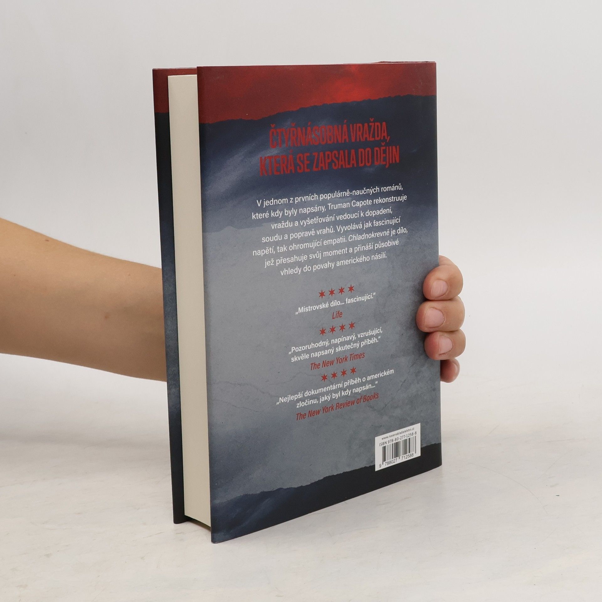 Dnes již klasická kniha Chladnokrevně vypráví reportážním stylem o bestiálním zločinu, který v roce 1959 otřásl Spojenými státy a k němuž došlo v zapadlé vesnici v Kansasu: dvojice mužů, kteří se každý z jiných důvodů dostali na šikmou plochu, tehdy povraždila čtyři členy farmářské rodiny.Autor se zabývá analýzou jejich motivů, sleduje průběh vraždy i následné detektivní pátrání a tento děsivý příběh přivádí až k samému závěru, když rekonstruuje trest smrti obou zločinců.Capoteův "román ze skutečnosti" vyšel poprvé v roce 1965 – a rozpoutal revoluci v americké literatuře. Prolínáním dokumentaristického přístupu, podpořeného trpělivým sběrem autentického materiálu, s prozaickou dovedností a estetickým zřetelem totiž autor vytvořil dílo, které se stalo nejenom zneklidňujícím obrazem jednoho zločinu, ale především symbolickým poselstvím o odvrácené straně společnosti.Pro tvorbu usilující o věrné zachycení problémů a paradoxů moderního světa tak Capoteova kniha otevřela zcela nové možnosti a stala se inspirací řady dalších literárních děl.