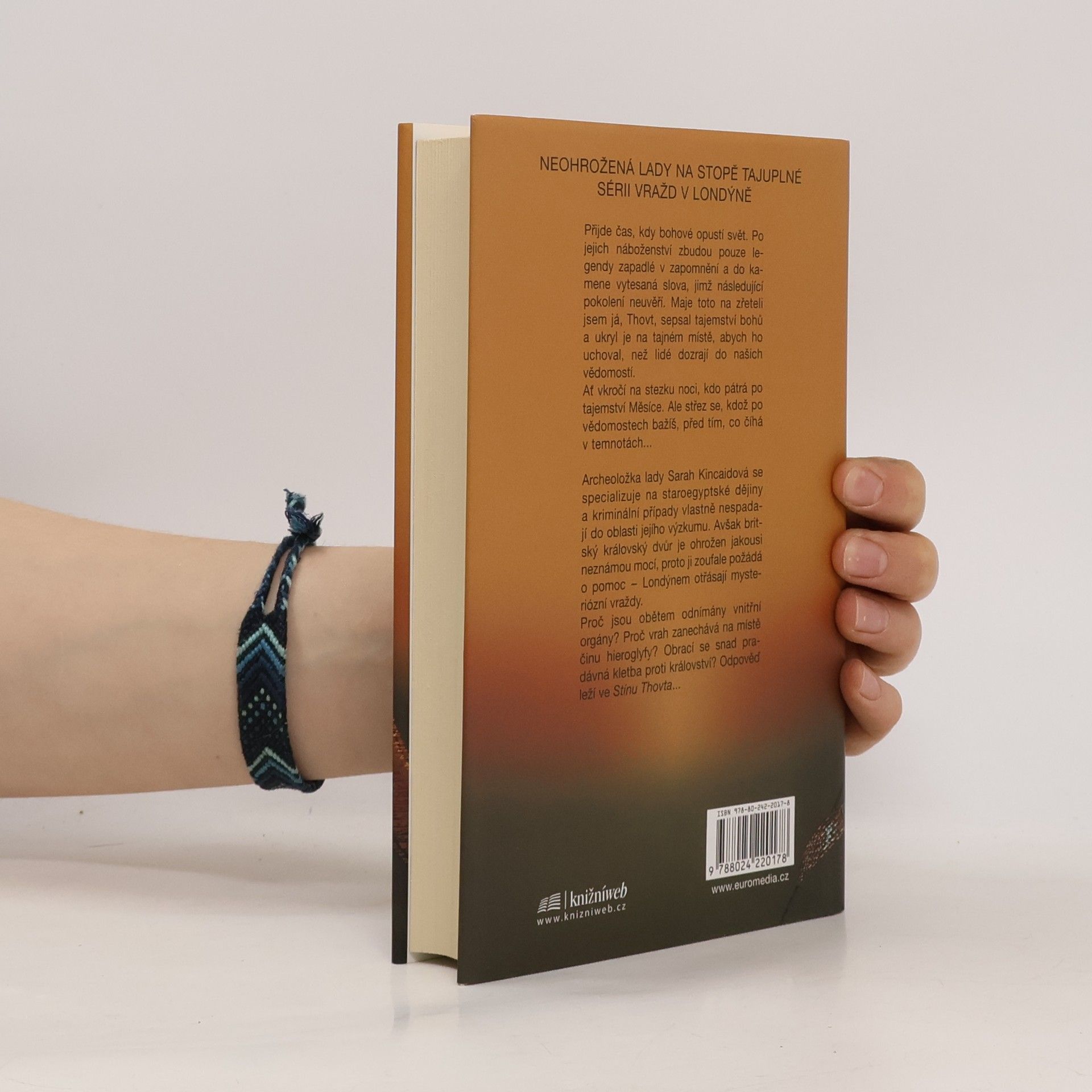 Mladá archeoložka Sarah Kincaidová žije v Yorkshiru po tragické smrti svého otce při vykopávkách v Alexandrii. Její strýc, doktor Mortimer Laydon, ji nečekaně vyzve, aby ho doprovodila do Londýna, kde se v chudinské čtvrti Whitechapel odehrává série brutálních vražd mladých žen. Na místech činu se objevují tajemné hieroglyfy, které Sarah okamžitě rozpoznává jako symbol staroegyptského boha Měsíce Thovta. Scotland Yard je bezradný, zatímco Sarah se snaží odhalit, zda za vraždami stojí Egyptská liga, vědecké sdružení vedené anglickým následníkem trůnu Albertem Victorem. Je možné, že liga je zapletena do spiknutí, které ohrožuje celou říši? Záhadná černá drožka se vždy objevuje poblíž míst činu, což vyvolává další otázky. Pověst Koruny je v ohrožení a veřejnost se bouří. Všechny naděje se upírají k Sarah, která se snaží rozluštit stopy vedoucí do starého Egypta. Jakou roli hraje Stín Thovta, prastaré kultovní místo, a skrývá Knihu Thovta, odkaz boha Měsíce? Sarah se vydává na nebezpečnou expedici do tajemné minulosti, aby odhalila pravdu o těchto hrůzných činech.