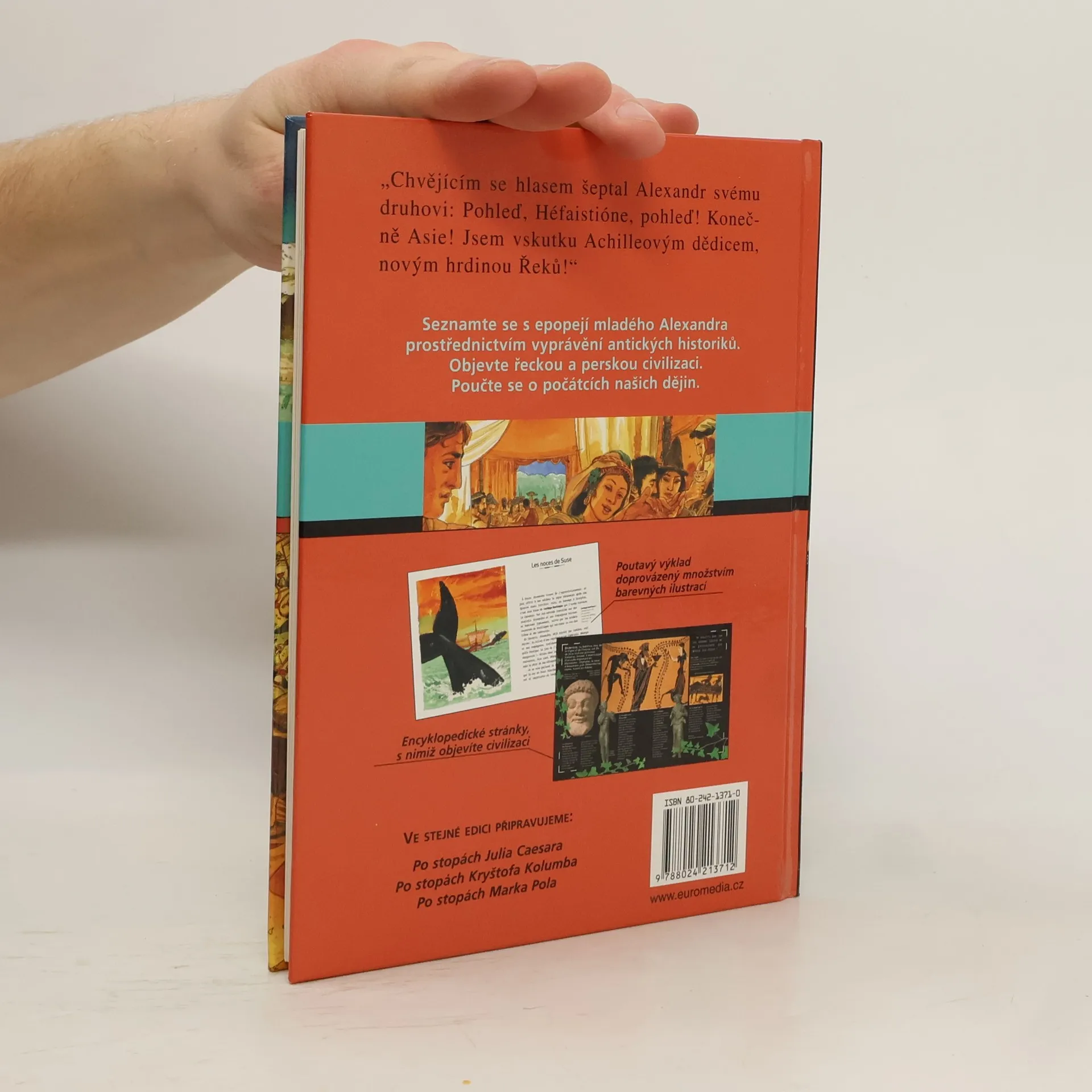 Příběh o Alexandrovi Velikém a jeho dobyvatelských taženích je proložen základními údaji o příslušném historickém období. Pro starší děti. Alexandr Veliký se při svých dobyvatelských cestách dostal až na území Malé Asie. Příběh, který autorka napsala na základě podkladů řeckého dějepisce Arriána, je doplněn encyklopedickými údaji v podobě vložených dvojstran. Z nich se dozvíme fakta například o perské říší, armádě ve starověku atd. Slova vyznačená v příběhu tučně jsou vysvětlena na okrajích textu.... celý text