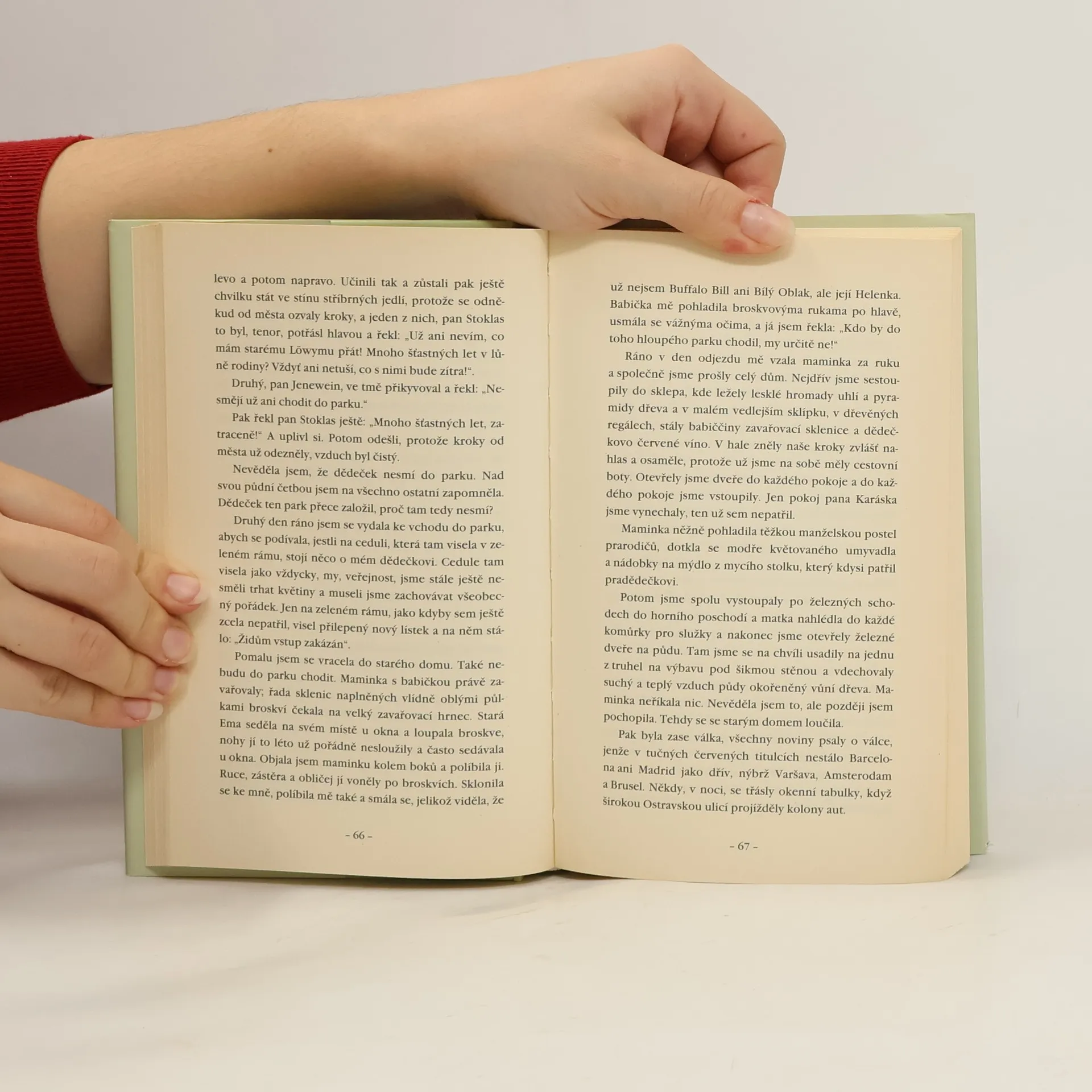 Román Hanny Demetzové (1928 Ústí nad Labem — 1993 Bethlehem USA) se odehrává v okupovaných Čechách. Jeho hrdinka Helenka vnímá ohrožení, které ji začíná obklopovat z počátku jen jaksi mimoděk, na pozadí vlastních dětských a pubertálních problémů. Ale postupně musí přihlížet, jak její blízké, matku — českou Židovku, otce — sudetského Němce, jejich sourozence a příbuzné, i její první lásku, německého vojáka, doba nemilosrdně třídí do znepřátelených táborů a obrazně i doslova je ničí. Z této (do značné míry autobiografické) perspektivy se autorce knihy podařilo v naléhavé zkratce načrtnout řadu otázek spojených s židovským osudem i koncem tisíciletého soužití tří kultur v českých zemích.
