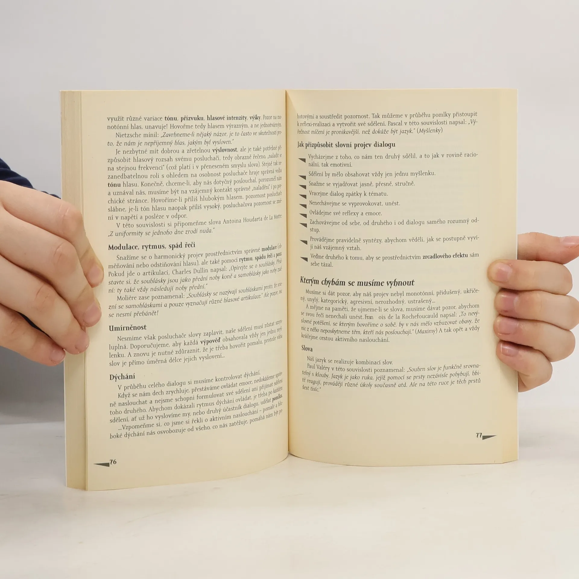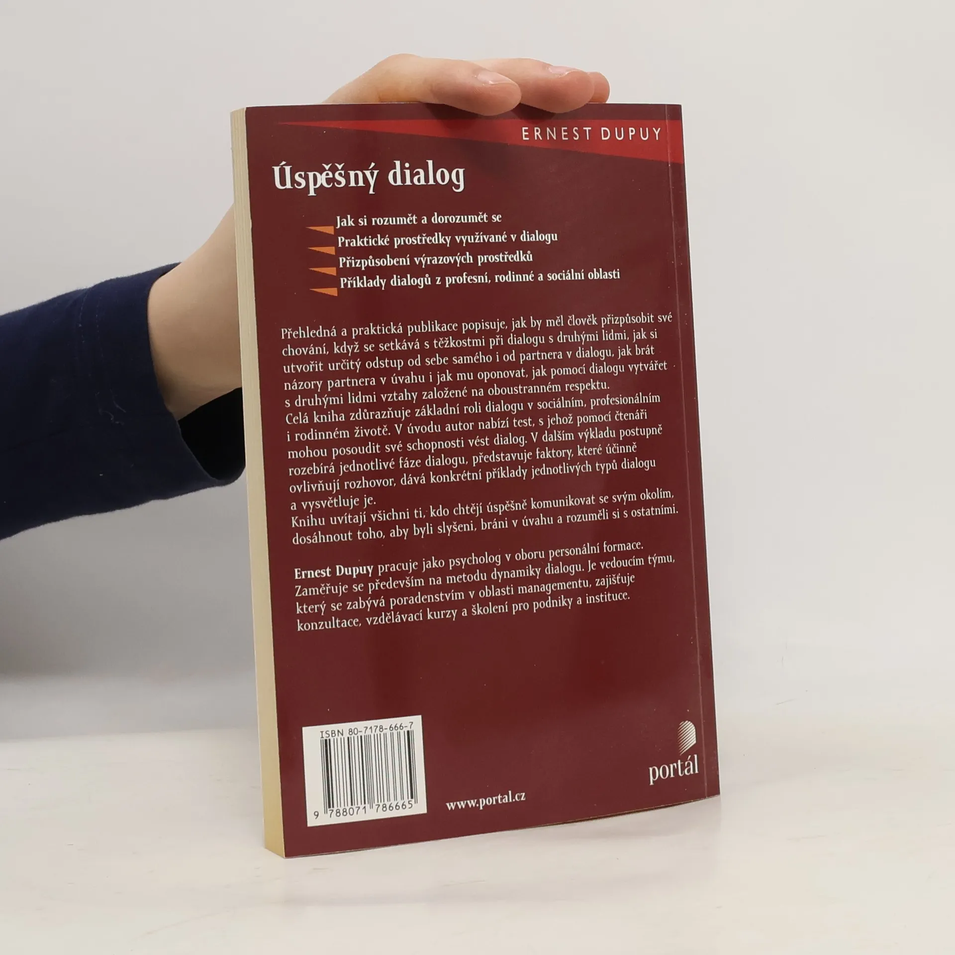 Jak si rozumět a dorozumět se .Praktické prostředky využívané v dialogu. Přizpůsobení výrazových prostředků. Příklady různých typů dialogů z profesní, rodinné a sociální oblasti. Kniha je praktickým rádcem, který ukazuje, jak by měl člověk přizpůsobit své chování při různých těžkostech dialogu, jak si utvořit určitý odstup od sebe samého i od druhého, jak partnera brát v úvahu i jak mu oponovat, jak pomocí dialogu vytvářet vzájemné vztahy s druhými, založené na oboustranném respektu. Autor uvádí výklad osobním testem, s jehož pomocí čtenář může posoudit způsob a schopnost dialogu, postupně pak analyzuje jednotlivé fáze, představuje účinné faktory, dává konkrétní příklady podle typů a vysvětluje je.