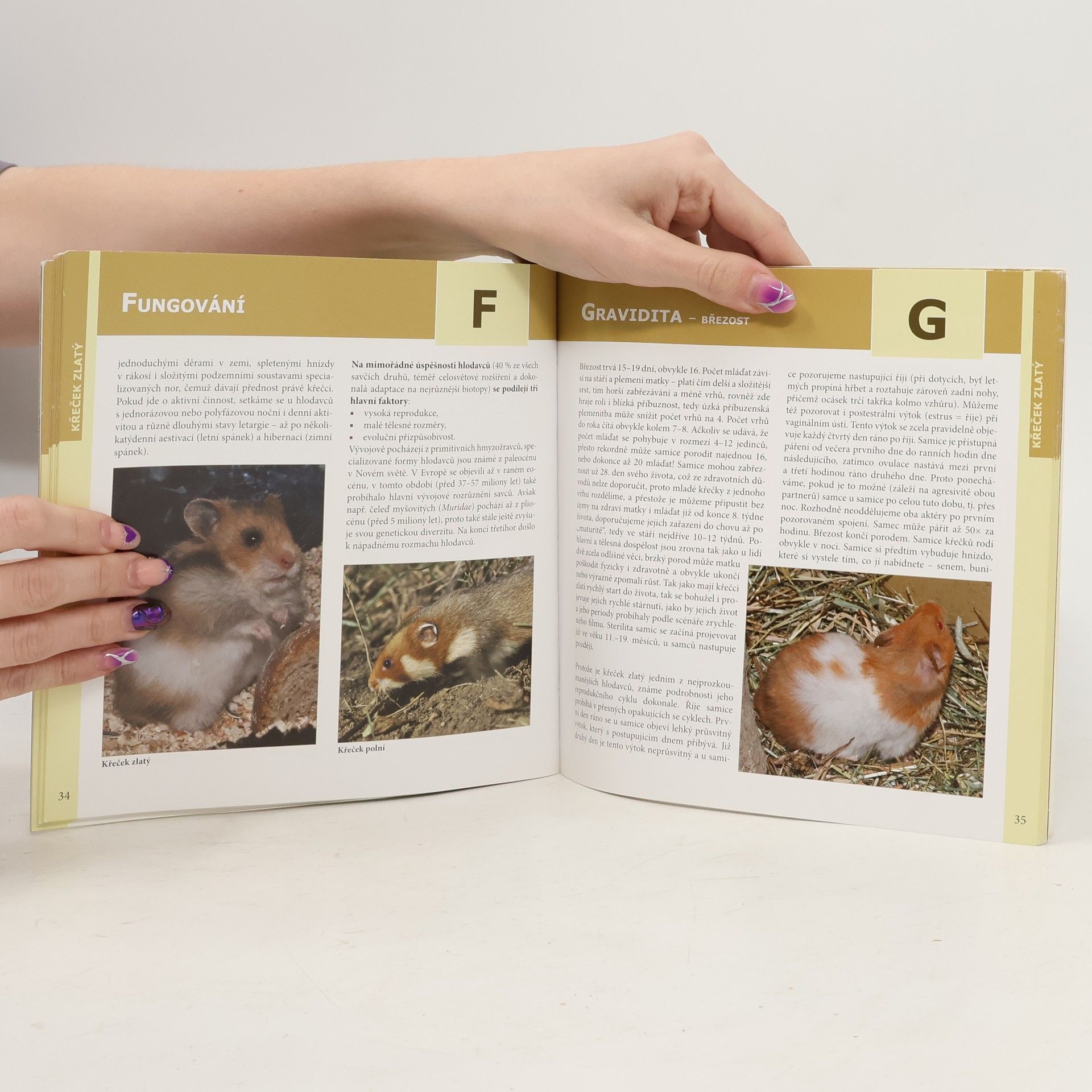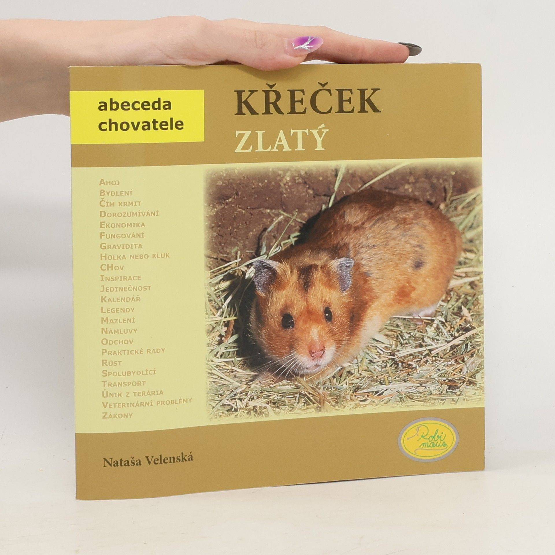 Křeček zlatý je často chované a snadno dostupné zvíře. Právě proto je zde tato knížka, která Vás podrobně s tímto druhem seznámí. Autorka Nataša Velenská je zkušená chovatelka z pražské zoologické zahrady. Kniha je určená jak pro začínající, tak i zkušené chovatele. V kapitolách, které jsou řazeny podle abecedních hesel, je popsána základní péče, rozmnožování, chov mláďat, zdraví, vztah k člověku a různé zajímavosti. Vše je doplněné množstvím barevných fotografií a obrázků. Zkrátka zde naleznete vše potřebné pro úspěšný chov a odchov těcho velmi oblíbených zvířat.