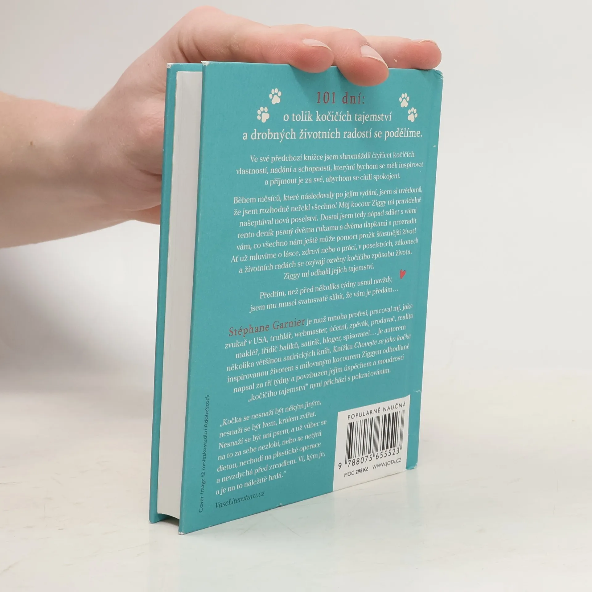 „Všechno, co jsem vám ještě neřekl…“ Ve své předchozí knížce jsem shromáždil čtyřicet kočičích vlastností, nadání a schopností, kterými bychom se měli inspirovat a přijmout je za své, abychom se cítili spokojení. Během měsíců, které následovaly po jejím vydání, jsem si uvědomil, že jsem rozhodně neřekl všechno! Můj kocour Ziggy mi pravidelně našeptával nová poselství. Dostal jsem tedy nápad sdílet s vámi tento deník psaný dvěma rukama a dvěma tlapkami a prozradit vám, co všechno nám ještě může pomoct prožít šťastnější život! Ať už mluvíme o lásce, zdraví nebo o práci, v poselstvích, zákonech a životních radách se ozývají ozvěny kočičího způsobu života. Ziggy mi odhalil jejich tajemství. Předtím, než před několika týdny usnul navždy, musel jsem mu svatosvatě slíbit, že vám je předám… 101 dní: o tolik kočičích tajemství a drobných životních radostí se podělíme.