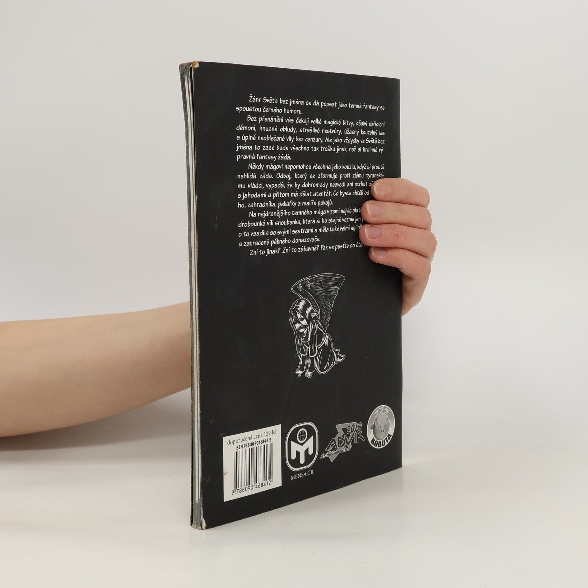 Žánr Světa bez jména se dá popsat jako temné fantasy se spoustou černého humoru. Bez přehánění vás čekají velké magické bitvy, děsivý okřídlení démoni, hnusné obludy, strašlivé nestvůry, úžasný kouzelný les a úplně neoblečené víly bez cenzury. Ale jako vždycky ve Světě bez jména to zase bude všechno tak trošku jinak, než si hrdinná výpravná fantasy žádá. Někdy mágovi nepomohou všechna jeho kouzla, když si prostě nehlídá záda. Odboj, který se zformuje proti zlému tyranskému vládci, vypadá, že by dohromady nesvedl ani otrhat záhonek s jahodami a přitom má dělat atentát. Co byste chtěli od vrátného, zahradníka, pekařky a malíře pokojů. Na nejdrsnějšího temného mága v zemi nejvíc platí jeho křehká, drobounká vílí snoubenka, která si ho stejně vezme jen proto, že se o to vsadila se svými sestrami a měla také velmi agilního, aktivního a zatraceně pěkného dohazovače. Zní to jinak? Zní to zábavně? Pak se pusťte do čtení. Zdroj anotace: komarovo.cz