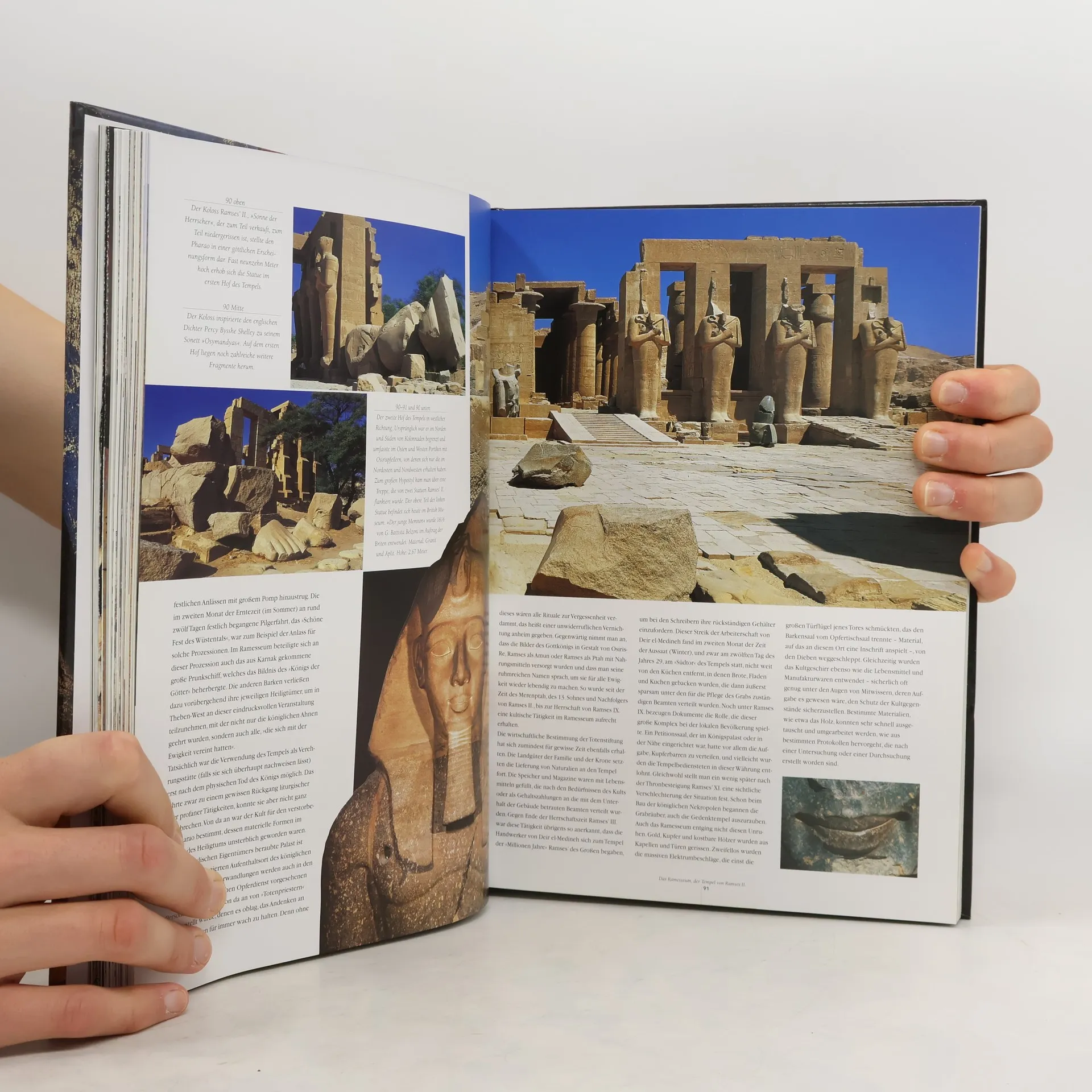 In grandioser Naturszenerie, den Bergen Thebens und der sie rings umgebenden Wüste, wurden einst heilige Stätten und Grabbauten von unvergleichlicher Schönheit errichtet, die schon in der Antike Besucher anlockten. Diese Tempelanlagen sollten das Andenken an Könige und Königinnen verewigen, etwa an Ramses, Amenhotep oder die faszinierende Hatshepsut. Archäologische Ausgrabungen haben auch die Wunderwerke innerhalb der Grabkammern - und der Nekropolen von ranghohen Persönlichkeiten am Hofe der Pharaonen - wieder zugänglich gemacht. Die Entzifferung der Hieroglyphen und Symbole auf den Wandgemälden vertieften das Verständnis der altägyptischen Geschichte, die durch Araldo de Lucas atemberaubende Fotografien und die Begleittexte führender Ägyptologen schillernd lebendig wird.