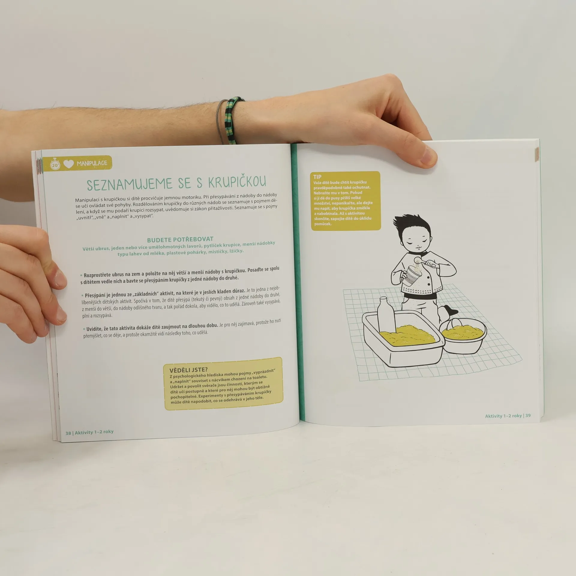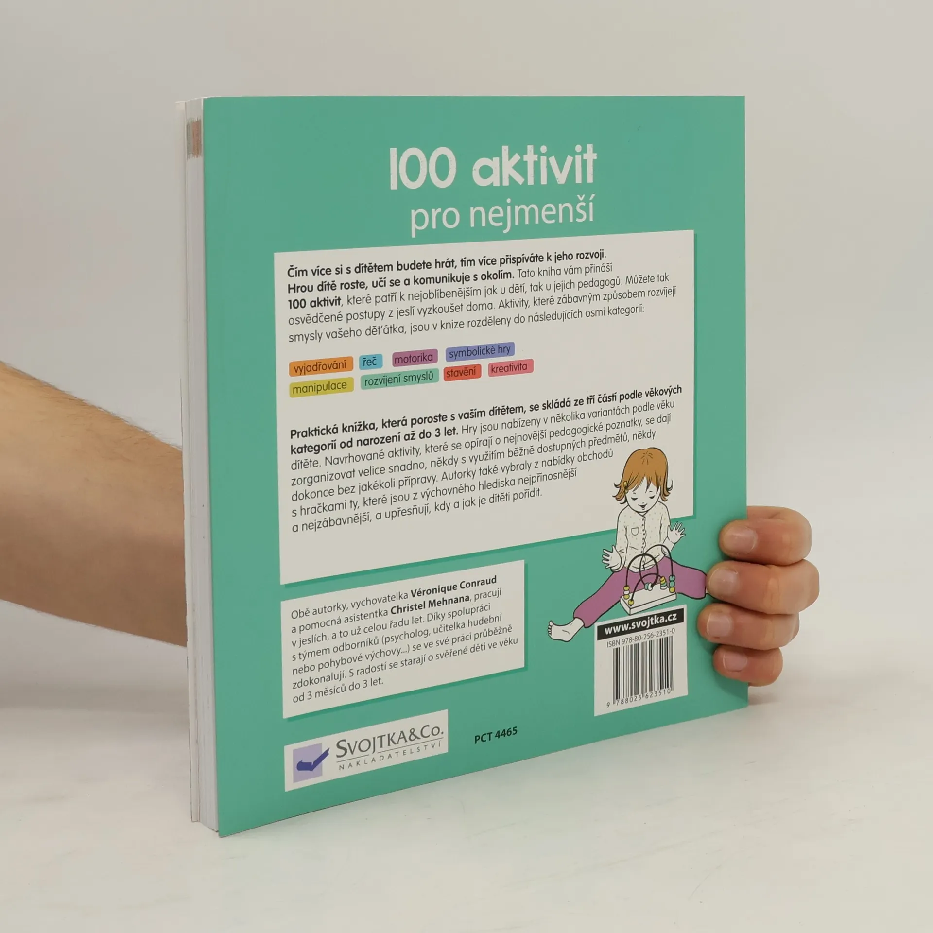 Krabice s převleky, hra na zrcadlo, opičí dráha, dechové hry, smyslové míčky nebo jóga pro nejmenší. To je jen malá ukázka toho, jaké aktivity v knize naleznete. Tyto aktivity nejsou nic jiného než hry – hry zaměřené na manipulaci s předměty, stavění, relaxaci, řečové dovednosti. Jsou seřazené do tří věkových skupin: od narození do jednoho roku, od roku do dvou let a od dvou do tří let. Díky nim si vaše dítě bude rozvíjet smysly a schopnosti, jako je řeč a slovní vyjadřování, jemná motorika, kreativita, manuální zručnost aj. Vedle zajímavých a rozvoj stimulujících her a hraček, které se dají pořídit v obchodě, nabízí tato kniha aktivity, které jsou finančně zcela nenáročné, protože k nim můžete využít běžné věci z domácnosti. Dospělý při hře asistuje, respektuje přání a rozhodnutí dítěte. Vytváří situace přiměřené věku dítěte, jeho psychomotorickému vývoji a potřebám. Kniha se drží hesla, že hlavním zaměstnáním dítěte je hra. A proto si hrajte!