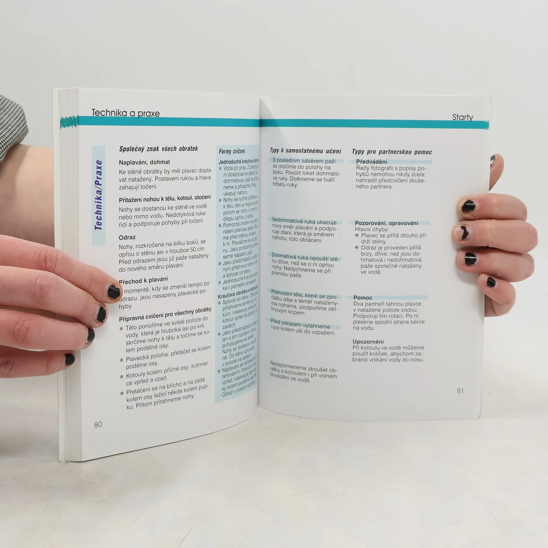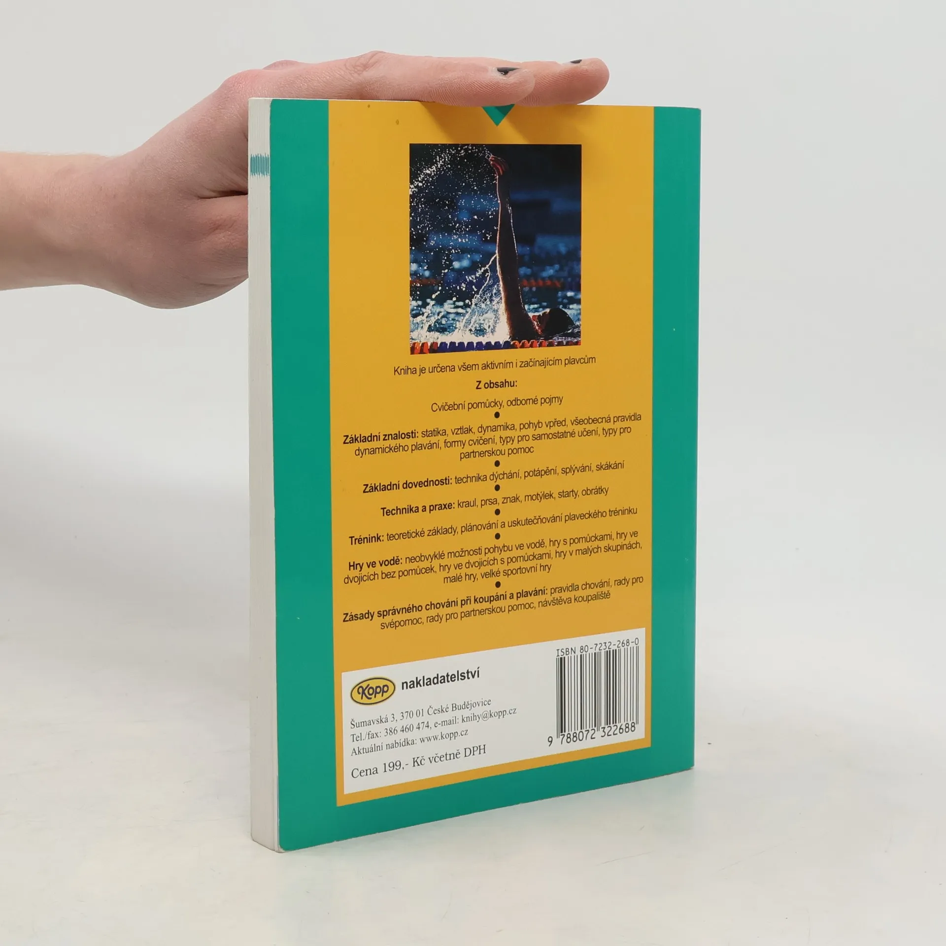 Všeobecná pravidla dynamického plavání, technika plavání, dýchání, potápění, splývání, skákání. Technika a praxe: kraul, prsa, znak, motýlek, starty, obrátky. Trénink: teoretické základy, plánování a uskutečňování plaveckého tréninku.