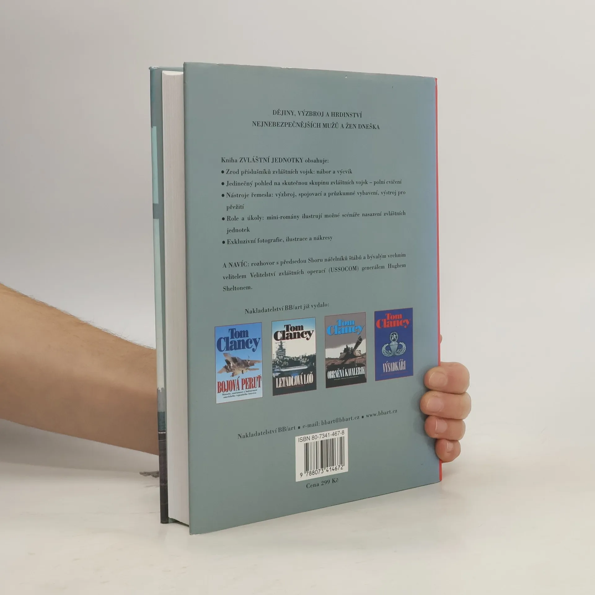 Dějiny, výzbroj a hrdinství nejnebezpečnějších mužů a žen dneška. Jsou vysíláni na nejžhavější místa světa na tajné akce plné nebezpečí. Musí podávat výkony na samé hranici svých tělesných i duševních sil, být kdykoliv připraveni k boji, ale poradit si i se záchrannými operacemi v případě katastrof. To jsou skupiny zvláštních vojsk amerických pozemních sil. Špičkový autor Tom Clancy dovádí svůj cit pro faktografickou literaturu k dokonalosti - a čtenář se ocitá blíže než jakýkoliv jiný civilista k bojovníkům, na nichž záleží národní bezpečnost Spojených států. Kniha Zvláštní jednotky obsahuje: . Zrod příslušníků zvláštních vojsk: nábor a výcvik . Jedinečný pohled na skutečnou skupinu zvláštních vojsk - polní cvičení . Nástroje řemesla: výzbroj, spojovací a průzkumné vybavení, výstroj pro přežití . Role a Úkoly: mini-romány ilustrují možné scénáře nasazení zvláštních jednotek . Exkluzivní fotografie, ilustrace a nákresy A navíc: rozhovor s předsedou Sboru náčelníků štábů a bývalým vrchním velitelem Velitelství zvláštních operací (USSOCOM) generálem Hugem Sheltonem.