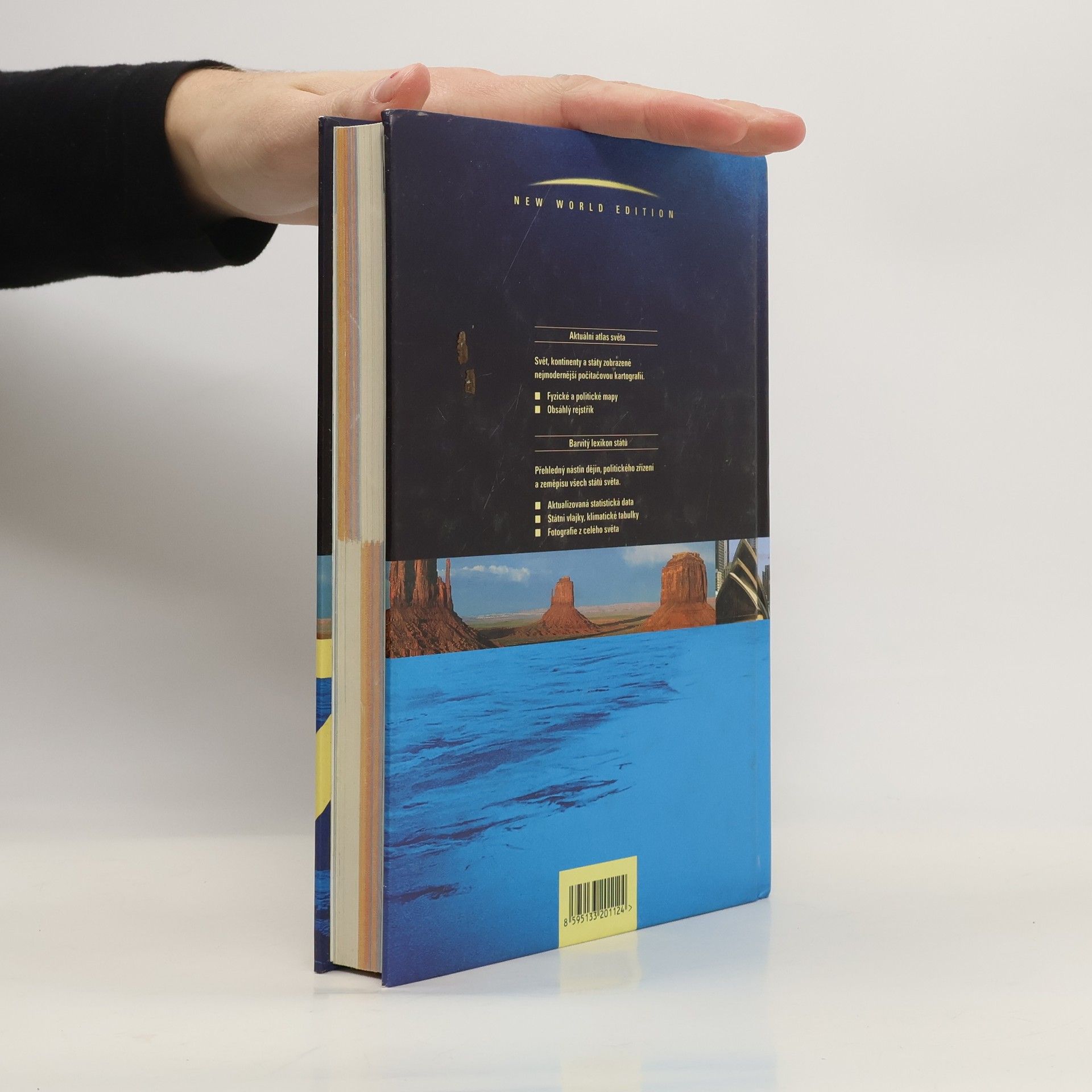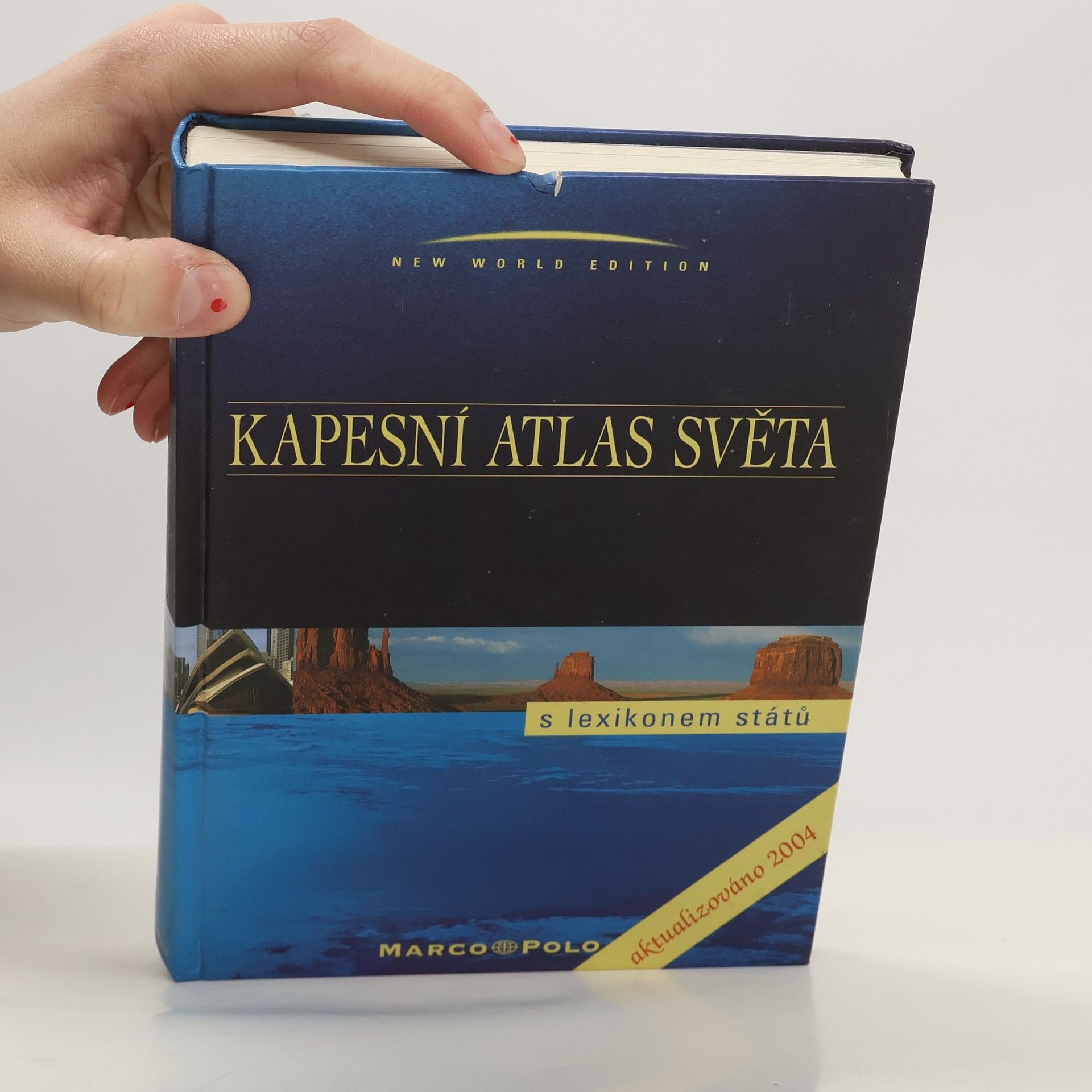 Aktuální atlas světa: Svět, kontinenty a státy zobrazené nejmodernější počítačovou kartografií. * Fyzické a politické mapy * Obsáhlý rejstřík Barvitý lexikon států: Přehledný nástin dějin, politického zřízení zeměpisu všech států světa. * Aktualizovaná statistická data * Státní vlajky, klimatické tabulky * Fotografie z celého světa Kapesní atlas světa s lexikonem států má přibližně formát A5, je v tvrdé vazbě a čítá 256 stran + bohatý rejstřík a je zároveň stručným průvodcem.