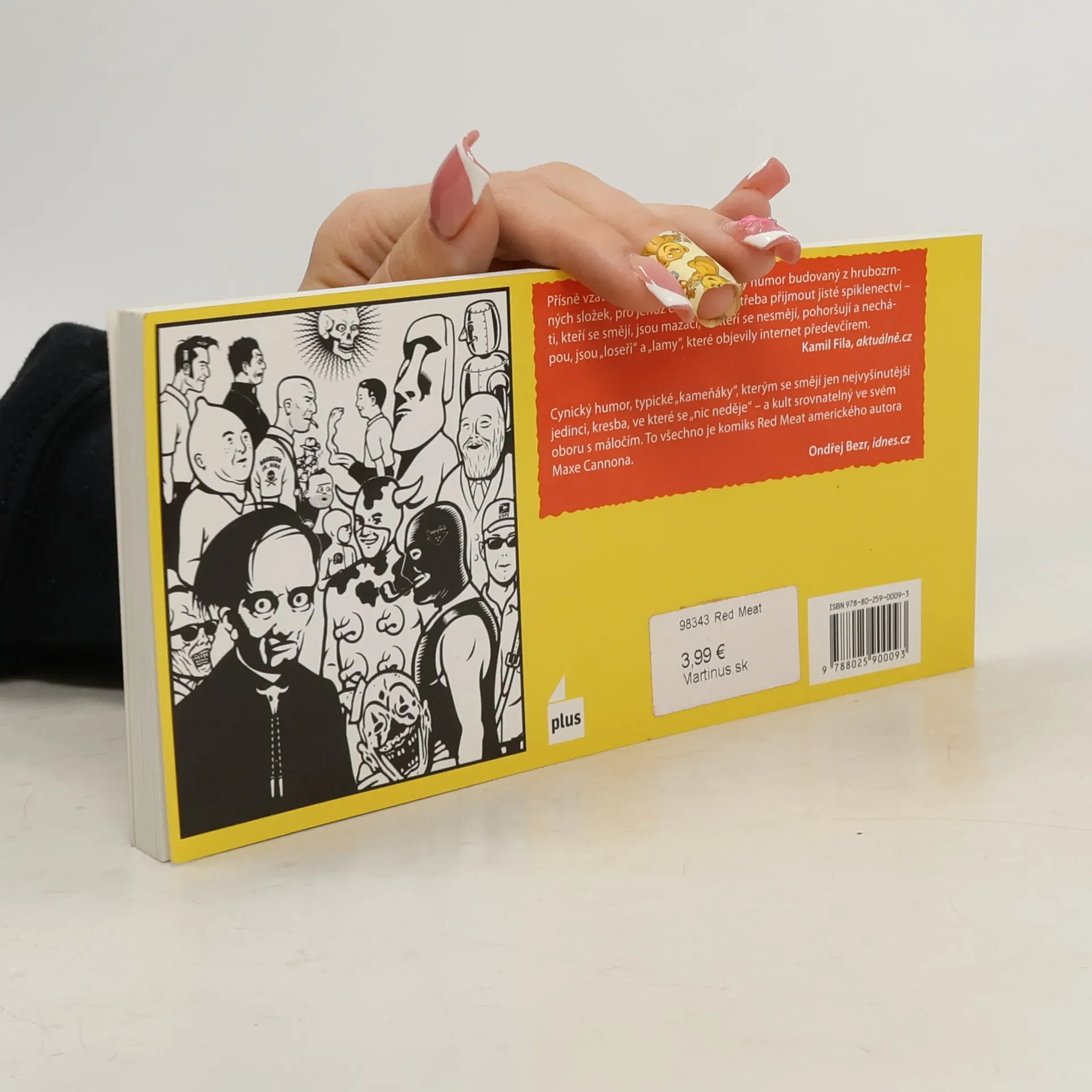 Kultovní komiks Red Meat se objevuje na stránkách amerického tisku už od roku 1989 - a s nástupem internetu se stal kultem i u nás. Red Meat 3 přináší další průhledy do autorova bizarního světa, plného černočerného humoru, kruté nadsázky, mrazivé ironie, psychopaticko-sadisticko-kriminologicko-laktačně-autistického sarkasmu. Cannonovi hrdinové jako by byli vystřiženi z filmů Davida Lynche; jejich strnulé výrazy ostře kontrastují s dynamickým, agresivním humorem, který leckoho šokuje, leckoho irituje, leckoho fascinuje, ale nikoho nenechává chladným - podobně jako rapper a výtvarník Vladimir 518, který třetí svazek Cannonovy ságy vyprovodil do světa svou předmluvou.