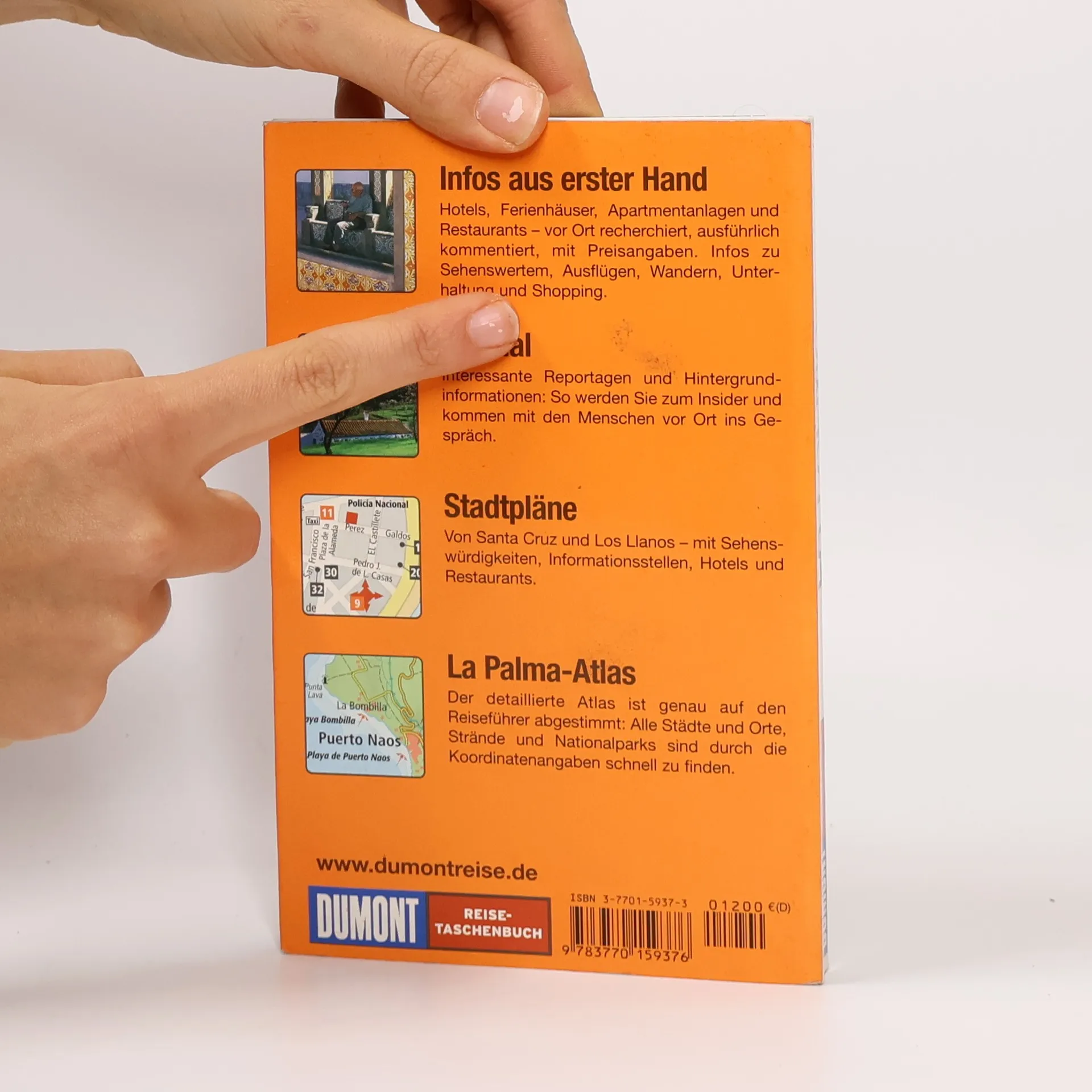Die Kanareninsel La Palma bietet eine Vielfalt an Landschaften: sonnige Küsten mit dunklen Badebuchten, üppige Urwälder, beeindruckende Vulkanlandschaften und karges Hochgebirge. Viele Urlauber kommen wegen des milden Klimas und der ganzjährigen Blütenpracht zum Wandern. Zu den Höhepunkten zählen die Mandelhaine bei Puntagorda, die dschungelartigen Lorbeerwälder von Los Tilos, Wasserfälle und Gebirgsbäche im Nationalpark Caldera de Taburiente, die Vulkane im Süden und auf der Cumbre Vieja sowie die lebendige Hauptstadt Santa Cruz. Die Autorin Susanne Lipps führt regelmäßig Wander- und Studienreisen auf die Insel und kennt die besten Wanderwege, Strände und Aussichtspunkte. Sie bietet Tipps zu Essen, Unterhaltung, Sport und Souvenir-Einkäufen. Jedes DUMONT Reise-Taschenbuch enthält einen mehrseitigen Atlas, der Reiseführer-Text und Karten praktisch verknüpft, sodass schnelles Auffinden garantiert ist. Ausgewählte Tipps mit Preisangaben zu Unterkünften sowie kommentierte Adressen zu Gastronomie, Shopping und Nachtleben sorgen für einen genussvollen Urlaub. Ein nützliches Leitsystem durch Piktogramme erleichtert die Orientierung. Das Kapitel „Tipps für Ihren Urlaub“ beantwortet wichtige Fragen zur Reisevorbereitung und -planung.
