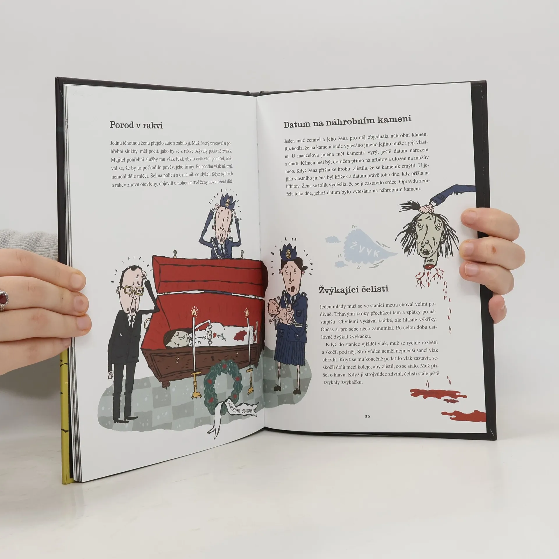 Krátké hororové historky, při kterých běhá mráz po zádech, jsou inspirované těmi nejúspěšnějšími příběhy, které si vypráví děti na letních táborech nebo na horách. Jsou o tom, co všechno se může stát, když se člověk nešťastnou náhodou připlete do cesty běsnícímu maniakovi, zavřou ho do mrazáku, omylem otevře rakev nebo se například ocitne o půlnoci v kostele. Knihu bohatě ilustrovala Helena Willisová. Pro čtenáře od 10 let (jen pro silné nátury).