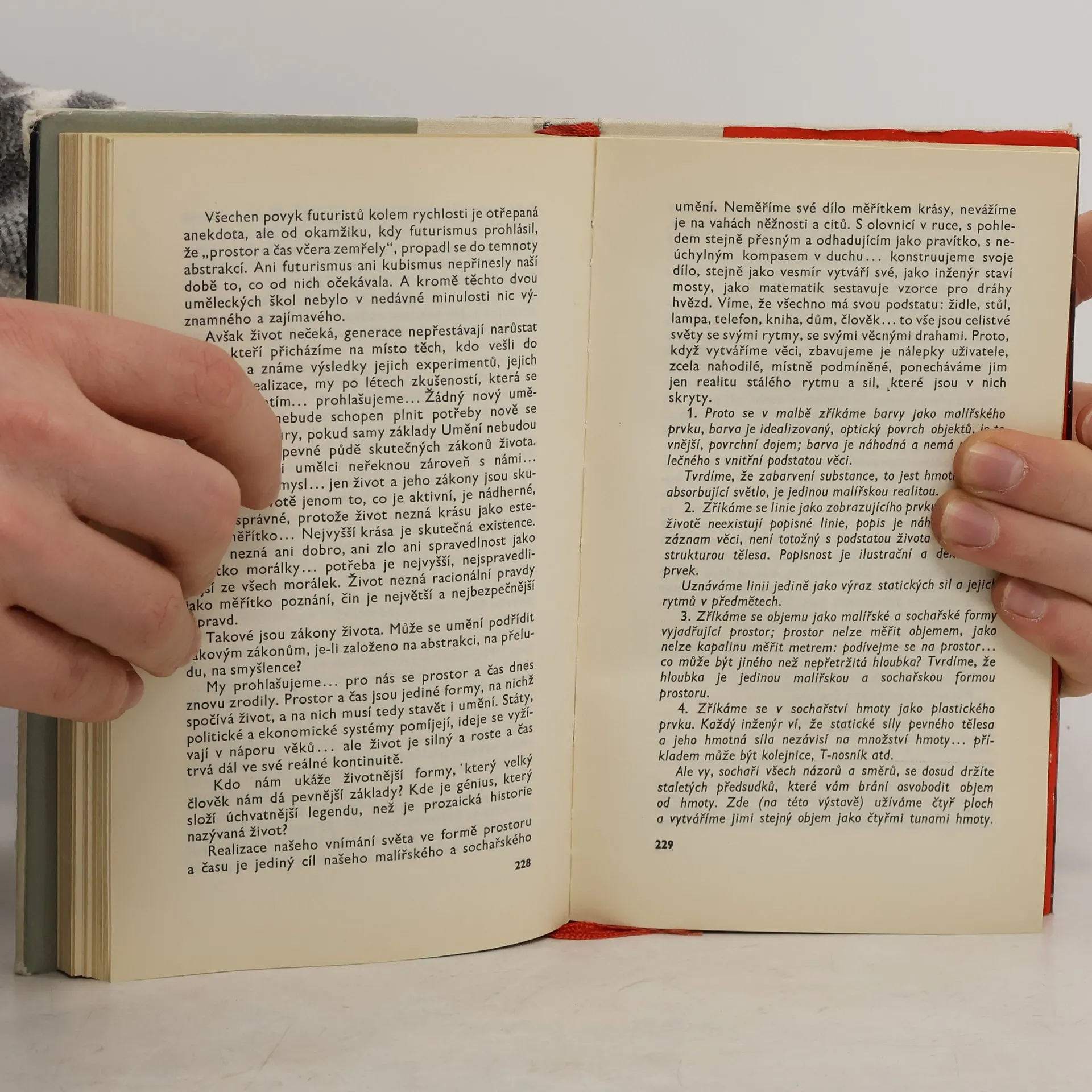 Antologie textů, dokumentů a svědectví moderních umělců. Kniha shromažďuje texty, které manifestují vlastní názory umělců (malířů), interpretují jejich vztah k umění, proces sebeuvědomování, obhajobu jejich postojů i výklad tvůrčího výrazu. Obsahuje přesné i instruktivní teoretické texty, manifesty a programy, které patří k základům teorie uměleckých směrů a reprezentují namnoze velmi podstatný příspěvek k estetice a filozofii moderního umění. Mají význam i pro uměleckohistorickou a kritickou interpretaci jejich díla. „Od renesance uvažuje umělec stále intenzivněji o sobě, zamýšlí se na podstatou i smyslem své tvůrčí činnosti, snaží se postihnout její vnitřní logiku, definovat zákonitosti, které jej ovládají. své uvažování si umělec nenechává pro sebe, ale stále častěji je zaznamenává a publikuje nejrozmanitějším způsobem. Od konce minulého století tvoří texty umělců souvislou řadu autointerpretační teorie, která může být namnoze chápána jako paralela vlastního výtvarného usilování. Jaký význam má teorie umělců pro uměleckohistorickou a kritickou interpretaci? V jakém vztahu je tato teorie k procesu historickém procesu objektivizace, která vřazuje dílo do vývoje lidského myšlení? Dílo, které bylo jednou dokončeno, podléhá přirozeně procesu odcizení. Vstupuje do kontaktu s divákem (je jím i kritik a historik umění), který formuje svou „interpretaci“. Postupující rozchod umění z počátku 20. století s formami reality, tak jak se jeví lidským smyslům, rozchod ústící ve zcela autonomní obrazový svět. se pak přirozeně odrazil i v autointerpretační teorii. To, co bylo třeba ozřejmovat sobě i vysvětlit divákům, bylo stále složitější a obtížnější. Umělec ovšem nejčastěji zaznamenává své myšlenky úryvkovitým, nesoustavným způsobem jakoby na okraji díla. Bývají to drobné postřehy a miniaturní úvahy, z nichž někdy pod tlakem vlastní potřeby nebo vlivem vnějších podnětů vznikají obsáhlejší celky. Bylo by ale chybné chápat myšlenky moderních umělců výlučně jen v souvislosti s jejich vlastní praxí. Jsou přirozeně podmíněny i vztahem k umění vůbec i k veškeré lidské činnosti, k životu společnosti atd. Tato antologie chce přiblížit problematiku moderního malířství vlastními myšlenkami jeho tvůrců. Za jejich slovy stojí jejich dílo, jehož přehodnocující aktualizace je stále naléhavou úlohou. je to úloha nejen historiků umění a kritiků, ale také umělců a tvořivě vnímajících diváků i čtenářů.“ (Z autorova úvodu)
