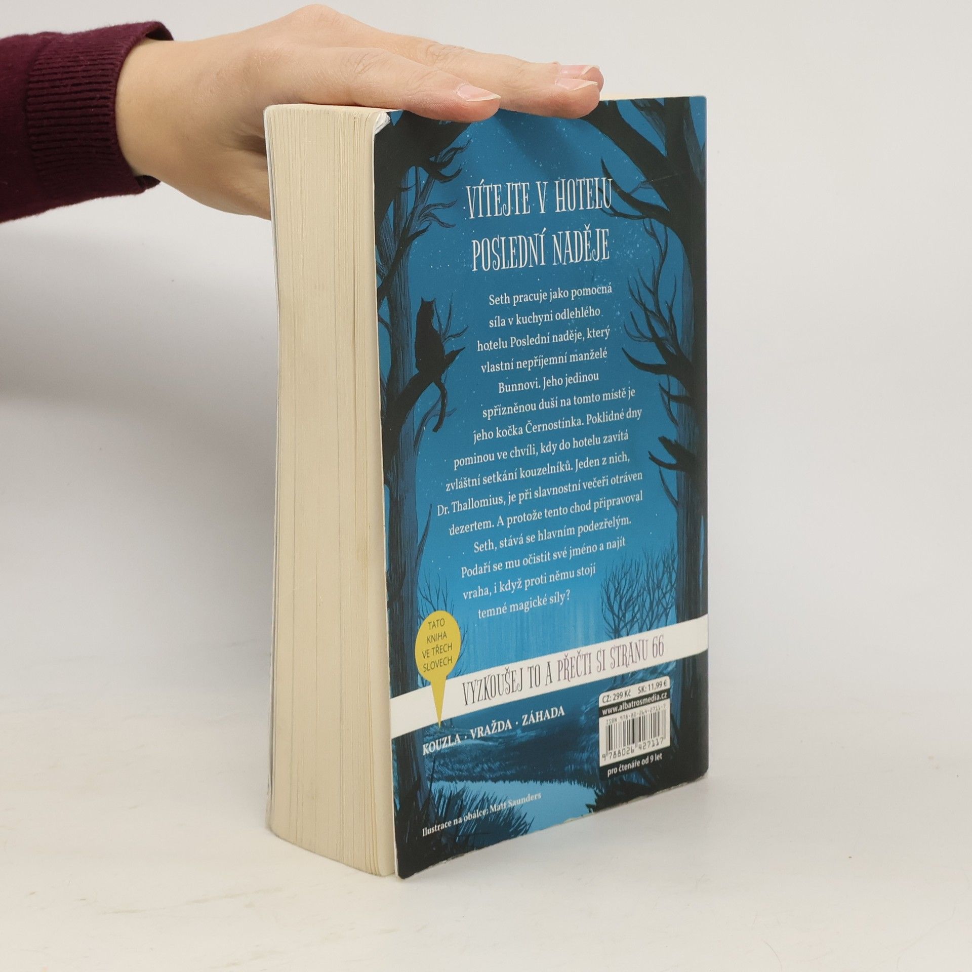 Detektivka ve stylu Agathy Christie plná kouzel Harryho Pottera! Hlavní hrdina Seth je pomocníkem v kuchyni hotelu Poslední naděje, který vlastní nepříjemná a zvláštní rodina Bunnových. Sethovou jedinou kamarádkou je jeho kočka Černostínka. Jednoho dne zavítá do hotelu skupina kouzelníků a jeden z nich je při slavnostní večeři otráven. A protože jed byl v dezertu, který připravoval Seth, stává se hoch hlavním podezřelým. Podaří se mu očistit své jméno a najít vraha, i když proti němu stojí temné magické síly?