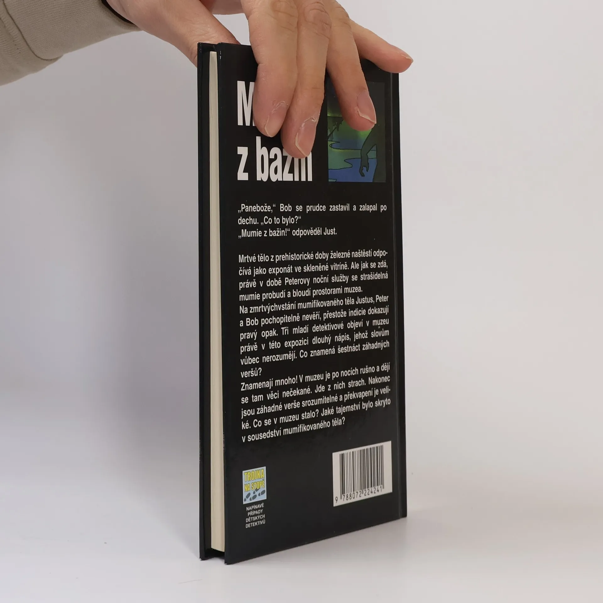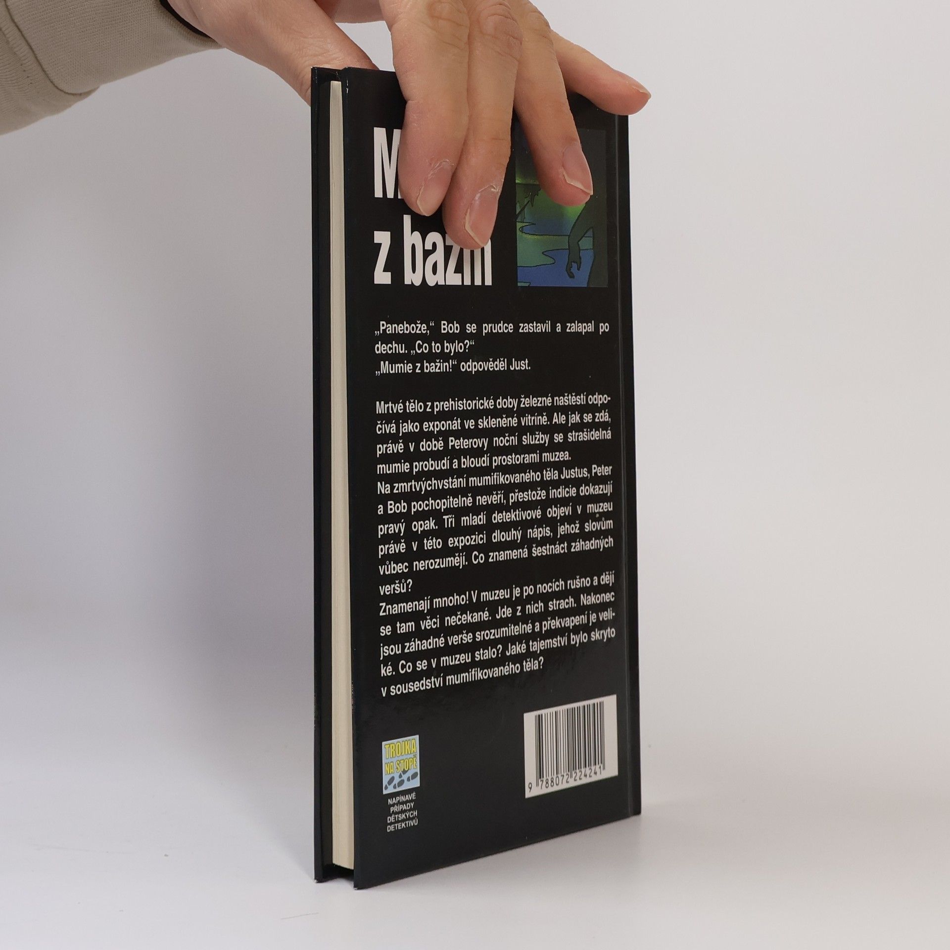 Mrtvé tělo z prehistorické doby železné odpočívá jako exponát ve skleněné vitríně. Ale jak se zdá, právě v době Peterovy noční služby se strašidelná mumie probudí a bloudí prostorami muzea. Na zmrtvýchvstání mumifikovaného těla Justus, Peter a Bob pochopitelně nevěří, přestože indicie dokazují pravý opak. Tři mladí detektivové objeví v muzeu právě v této expozici dlouhý nápis, jehož slovům vůbec nerozumějí. Co znamená šestnáct záhadných veršů? Znamenají mnoho! V muzeu je po nocích rušno a dějí se tam věci nečekané. Jde z nich strach. Nakonec jsou záhadné verše srozumitelné a překvapení je veliké. Co se v muzeu stalo? Jaké tajemství bylo skryto v sousedství mumifikovaného těla?