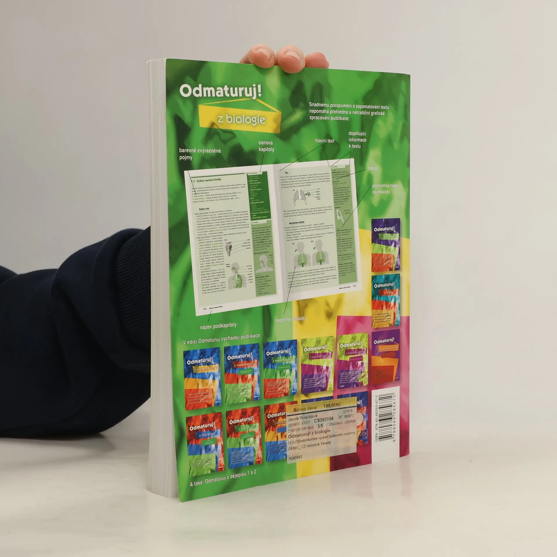 Poutavá učebnice určená k přípravě na maturitu (i k nové podobě maturity) a k přijímacím zkouškám na vysoké školy. Obsahuje celou středoškolskou látku biologie – obecná biologie, biologie jednotlivých skupin organismů: viry, prokaryotické organismy, jednobuněční, rostliny, houby, živočichové, dále biologie člověka, genetika a ekologie. Kniha je přehledně zpracována do 9 větších celků, které jsou dále členěny na menší kapitoly a podkapitoly. Snadnou orientaci v textu podporuje grafické odlišení ústředního textu od doplňujících poznámek. Text je doplněn mnoha přehlednými tabulkami, názornými obrázky a schématy. Určeno studentům všech středních škol během celého středoškolského studia, jejich učitelům a ostatním zájemcům o studium biologie.... celý text