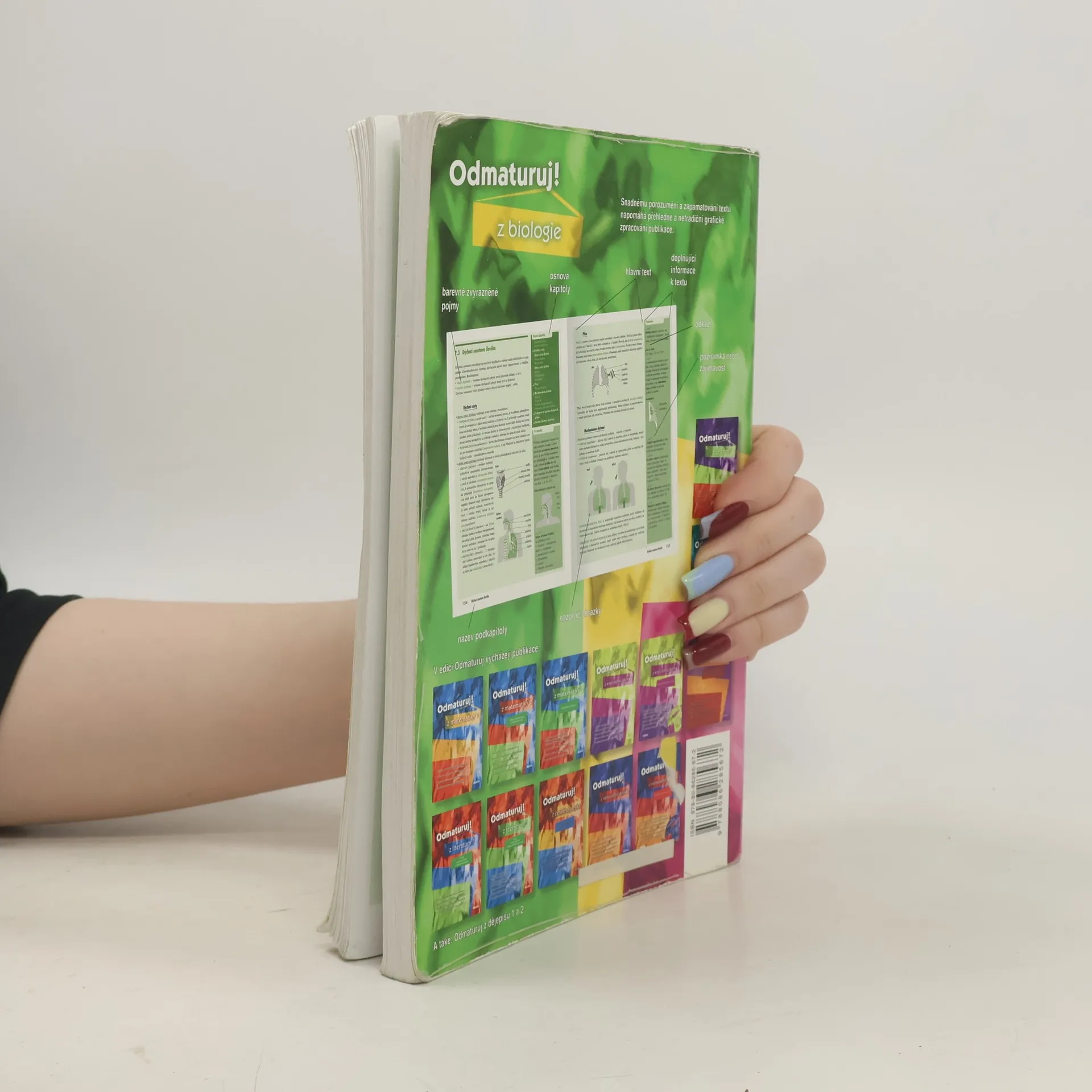 Poutavá učebnice určená k přípravě na maturitu (i k nové podobě maturity) a k přijímacím zkouškám na vysoké školy. Obsahuje celou středoškolskou látku biologie – obecná biologie, biologie jednotlivých skupin organismů: viry, prokaryotické organismy, jednobuněční, rostliny, houby, živočichové, dále biologie člověka, genetika a ekologie. Kniha je přehledně zpracována do 9 větších celků, které jsou dále členěny na menší kapitoly a podkapitoly. Snadnou orientaci v textu podporuje grafické odlišení ústředního textu od doplňujících poznámek. Text je doplněn mnoha přehlednými tabulkami, názornými obrázky a schématy. Určeno studentům všech středních škol během celého středoškolského studia, jejich učitelům a ostatním zájemcům o studium biologie.... celý text