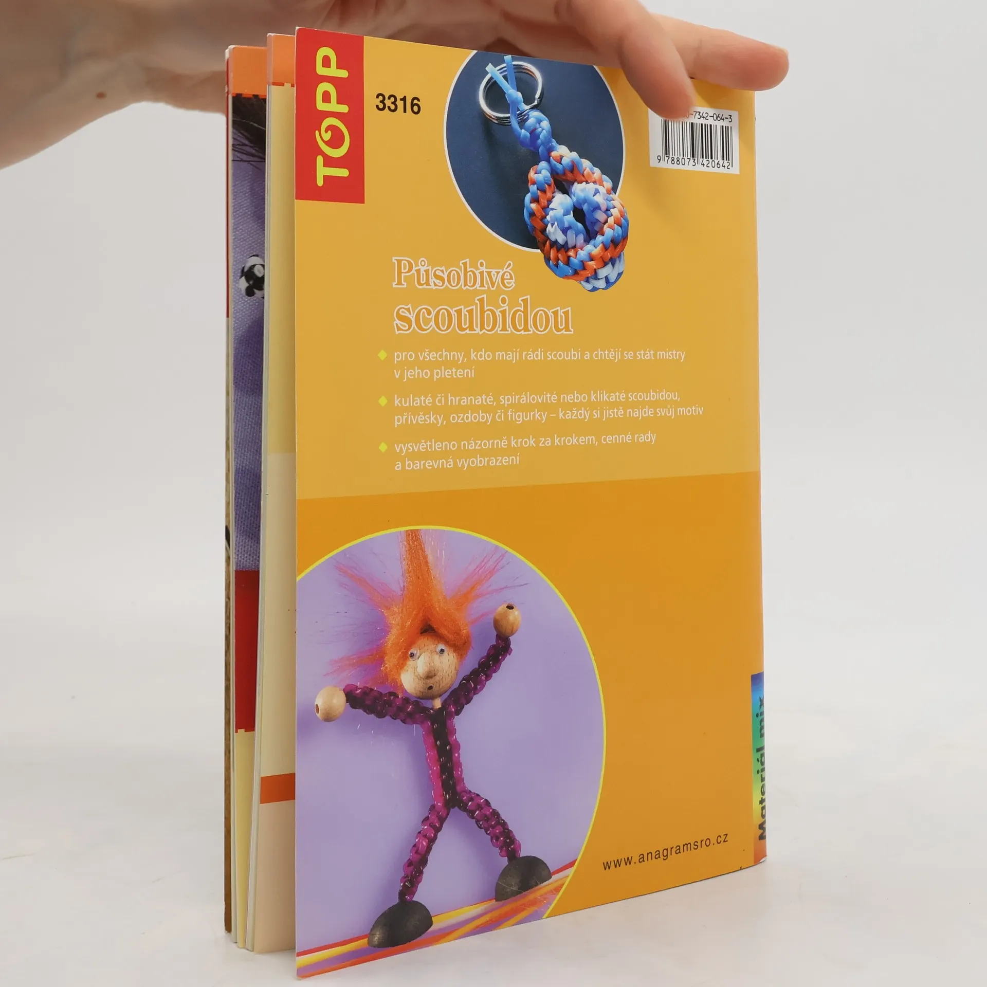 Pro všechny, kdo mají rádi scoubi a chtějí se stát mistry v jeho pletení vychází další knížka. Seznámíte se v ní s pletením kulatého či hranatého, spirálovitého nebo klikatého scoubidou a pomocí přesných návodů si vytvoříte pěkné přívěsky, ozdoby či figurky.