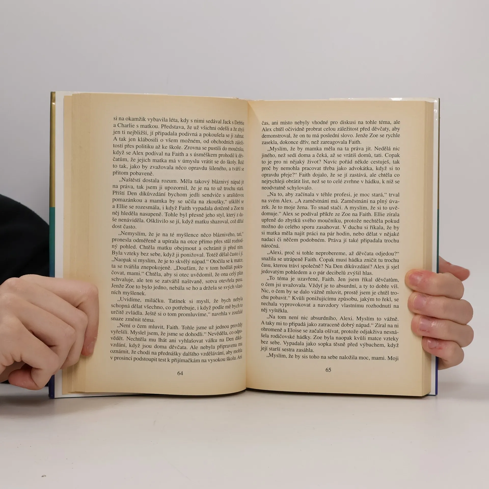 Faith Madisonová je inteligentní a přitažlivá žena s úspěšným manželem a dvěma dospělými dcerami, Zoe a Elison. Po odchodu dcer z domova se však ocitá v krizi identity, cítí se nepotřebná. Na scénu přichází dávný přítel Brad, který ji podporuje v rozhodnutí začít studovat práva. Její manžel Alex se však vehementně staví proti, domnívá se, že její povinností je starat se o rodinu. Elison, dcera, stojí na otcově straně, což Faith staví před těžké rozhodnutí: jít za svým snem nebo se vrátit do role spokojené manželky. Je Faith sobecká, nebo je Alex příliš dominantní? Autorka zkoumá tyto otázky a konfrontuje různé názory na roli žen a mužů ve společnosti. Mezitím v Bradově rodině hrozí tragédie, když jeden z jeho synů utrpí vážné zranění v odlehlé části Afriky, a čas na záchranu se krátí. Vztahy mezi postavami jsou komplexní a realistické, ukazují, že i silní lidé mohou čelit vnitřním a vnějším konfliktům. Autorka mistrně zachycuje nuance lidských emocí a vztahů, čímž vytváří postavy, které jsou důvěrně známé a blízké čtenářům.