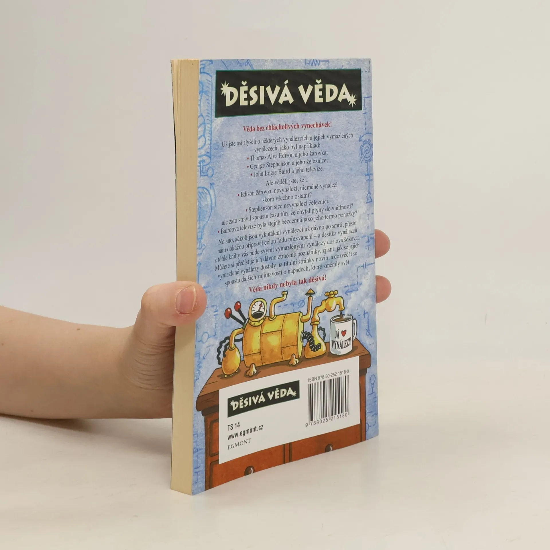 Věda bez chlácholivých vynechávek! Už jste asi slyšeli o některých vynálezcích, jako byl například: • Thomas Alva Edison a jeho žárovka; • George Stephenson a jeho železnice; • John Logie Baird a jeho televize? Ale věděli jste, že... • Edison žárovku nevynalezl, nicméně vynalezl skoro všechno ostatní? • Stephenson sice nevynalezl železnici, ale zato strávil spoustu času tím, že chytal plyny do vnitřností? • Bairdova televize byla stejně bezcenná jako jeho termo ponožky? No ano, ačkoli jsou vykutálení vynálezci už dávno po smrti, přesto nám dokážou připravit celou řadu překvapení – a desítka vynálezců z téhle knihy vás bude svými vymazlenými vynálezy doslova šokovat. Můžete si přečíst jejich dávno ztracené poznámky, zjistit, jak se jejich vymazlené vynálezy dostaly na titulní stránky novin, a vůbec se dozvědět spoustu zajímavostí o nápadech, které změnily svět. Děsivě zábavné – děsivě napínavé – děsivě šokující.