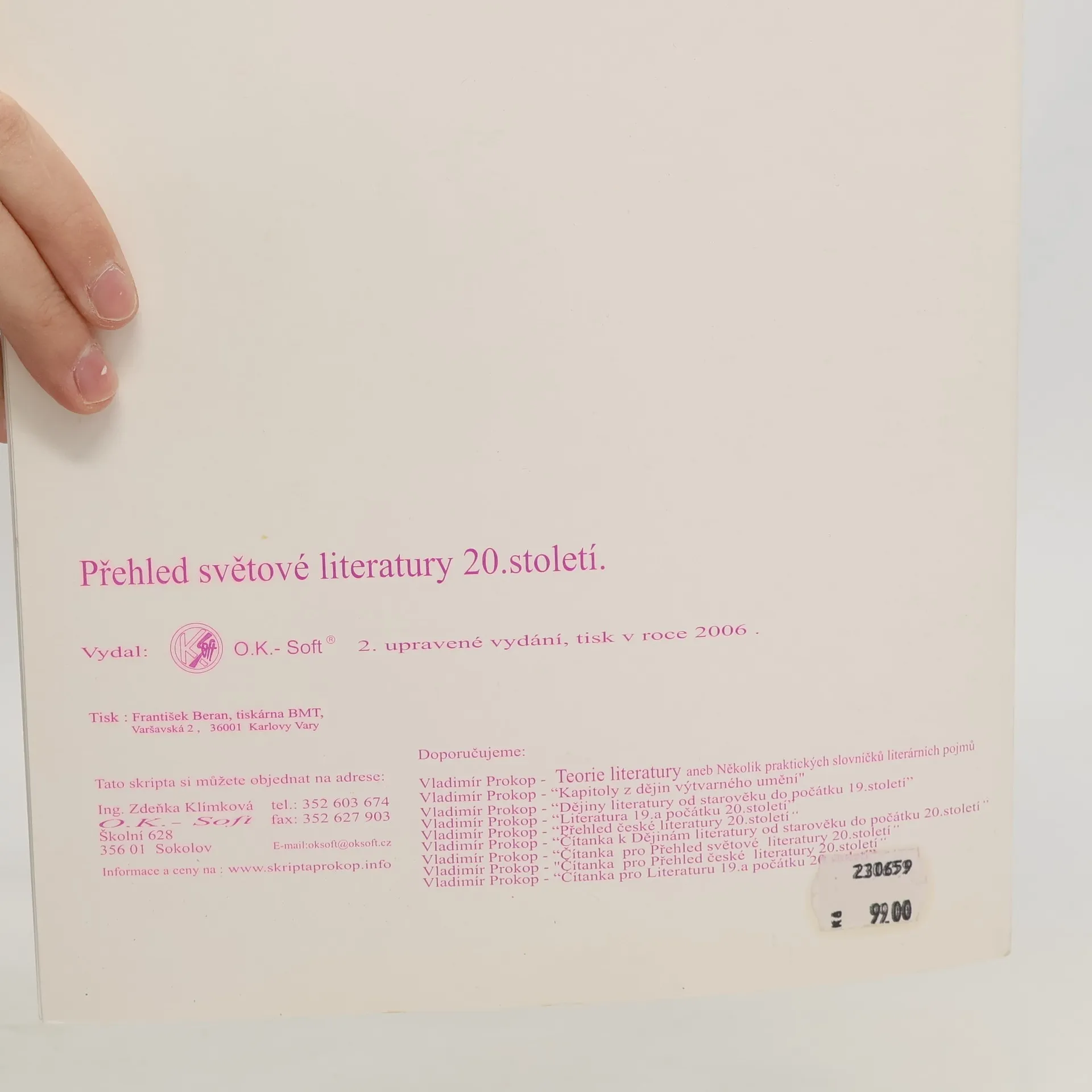 Skladem máme celkem knihy Přehled světové literatury 20. století (2006).