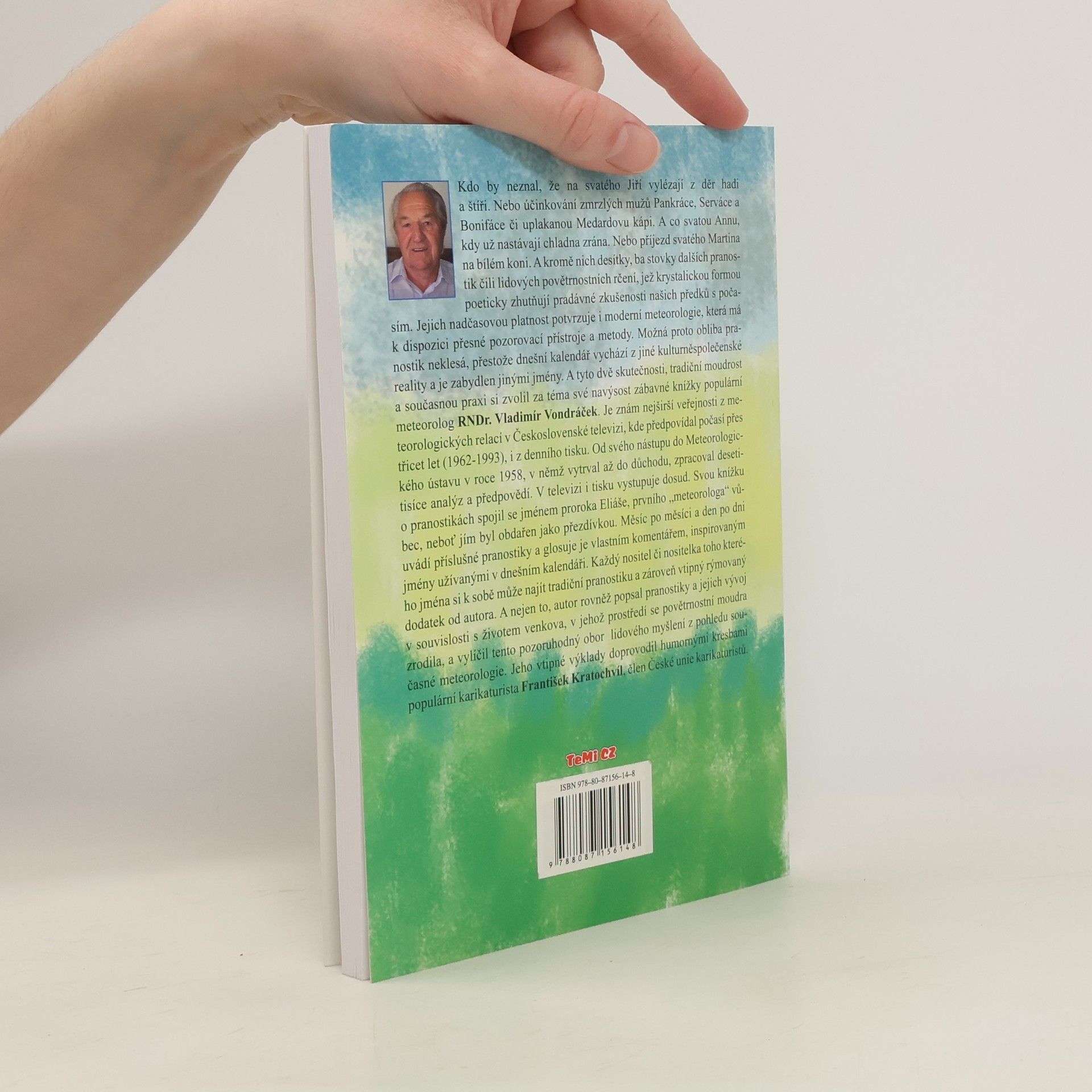 Na svatého Jiří vylézají hadi a štíři, Pankrác, Servác a Bonifác přinášejí zimu, a Medardova kápa je uplakaná. Svatá Anna signalizuje chladná rána, zatímco svatý Martin přijíždí na bílém koni. Tyto pranostiky, vyjadřující lidové povětrnostní rčení, shrnují dávné zkušenosti našich předků s počasím a jejich platnost potvrzuje moderní meteorologie. Přestože dnešní kalendář je ovlivněn jinou kulturní realitou, obliba pranostik přetrvává. Téma tradiční moudrosti a současné praxe zpracovává populární meteorolog RNDr. Vladimír Vondráček, známý z televizních meteorologických relací a denního tisku. V Meteorologickém ústavu pracoval od roku 1958 a zpracoval tisíce analýz a předpovědí. Kniha o pranostikách je spojena s prorokem Eliášem, prvním „meteorologem“. Měsíčně a denně uvádí pranostiky s vlastním komentářem, inspirovaným dnešními jmény. Každý si může najít svou pranostiku a vtipný rýmovaný dodatek. Autor také popisuje vývoj pranostik v souvislosti se životem venkova, kde se zrodily, a zkoumá tento obor lidového myšlení z pohledu současné meteorologie. Vtipné výklady doprovází humorné kresby karikaturisty Františka Kratochvíla.
