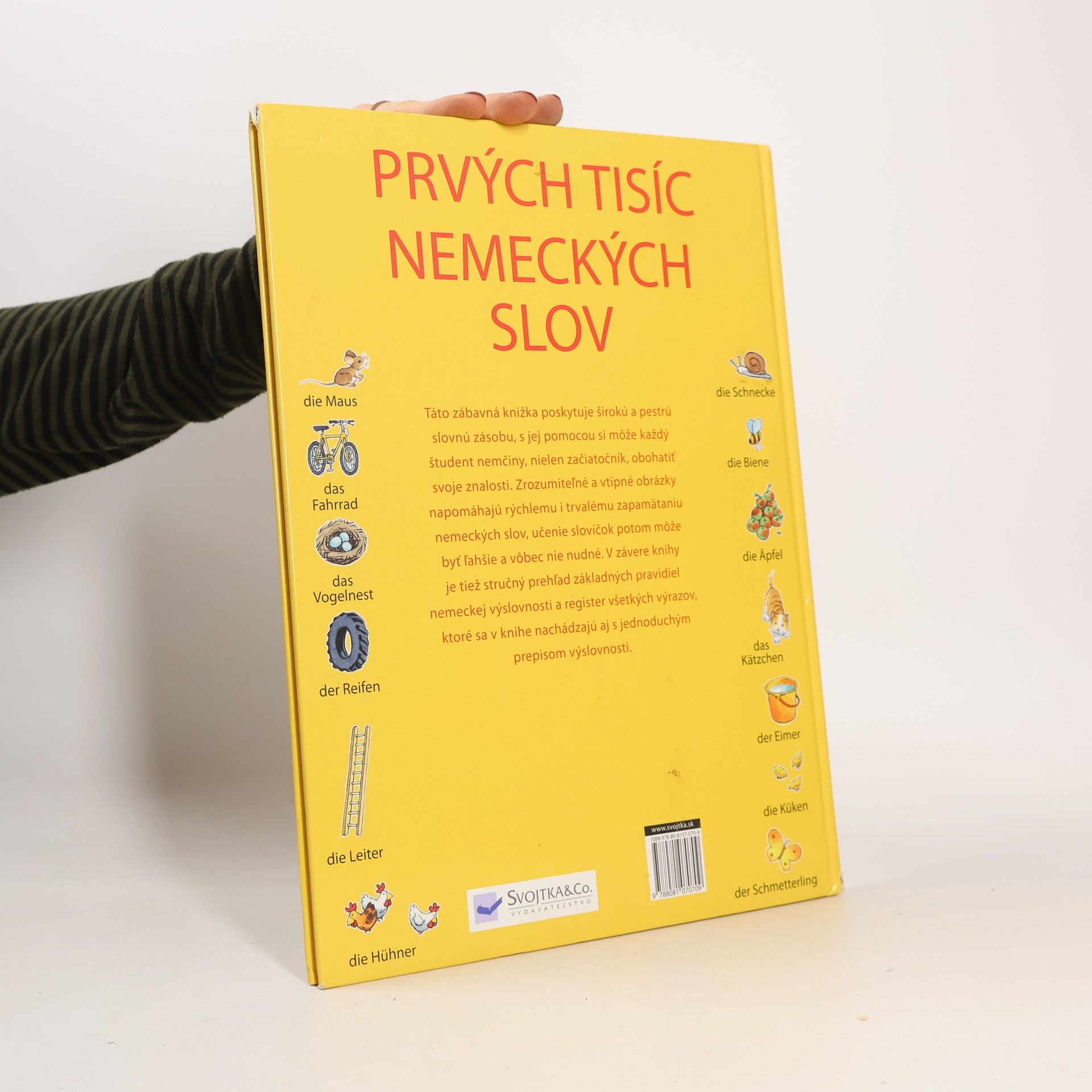 Táto zábavná knižka poskytuje širokú a pestrú slovnú zásobu, s jej pomocou si môže každý študent nemčiny, nielen začiatočník, obohatiť svoje znalosti. Zrozumiteľné a vtipné obrázky napomáhajú rýchlemu i trvalému zapamätaniu nemeckých slov.
