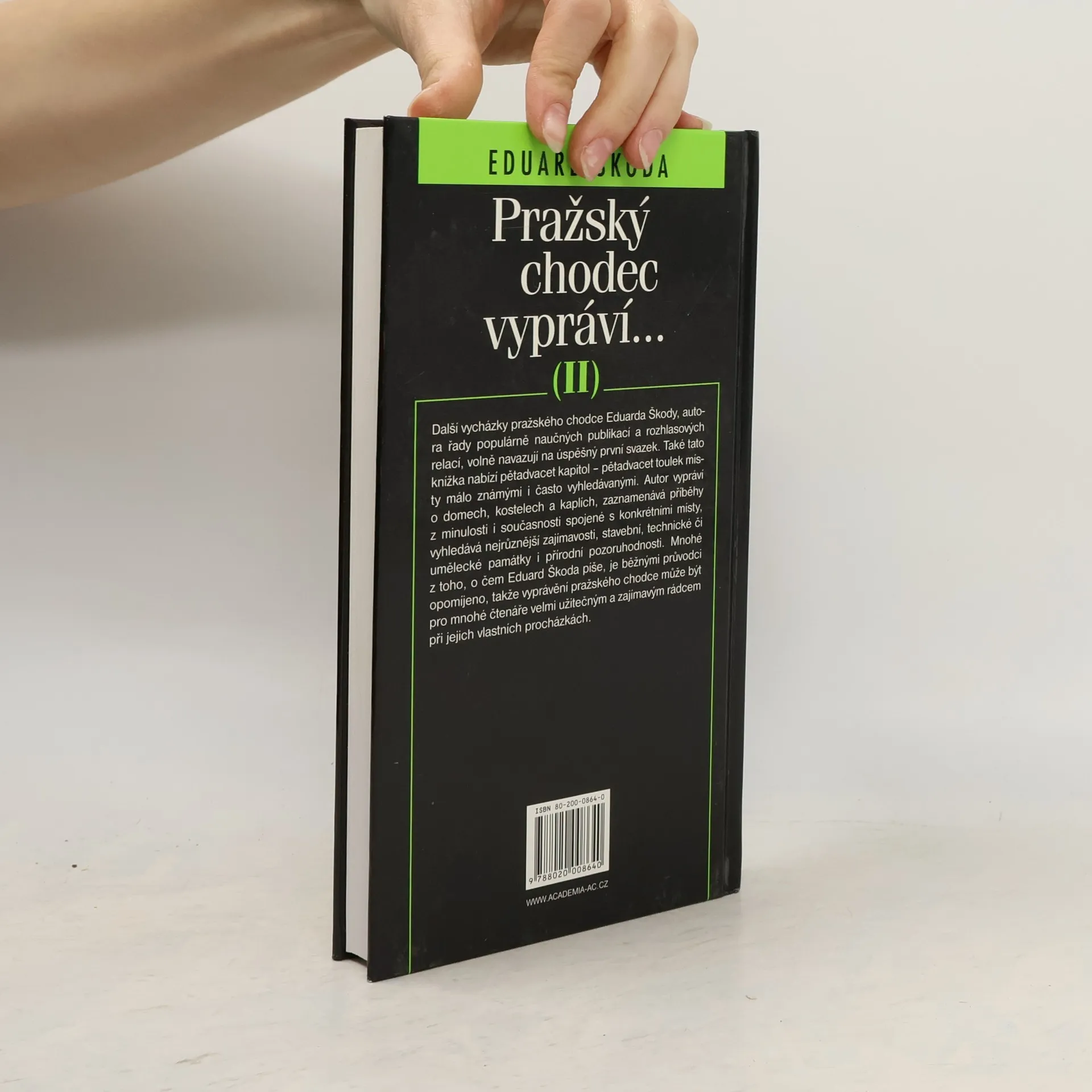 Druhý svazek ediční řady, která navazuje na autorovu populární rozhlasovou relaci. Obsahuje dalších pětadvacet procházek Prahou. Autor seznamuje čtenáře s řadou zajímavostí z historie i současnosti domů, kostelů a dalších staveb, s příběhy a lidskými osudy, které se váží k pomníkům či pamětním deskám, vedle turisticky atraktivních míst v historickém centru Prahy objevuje pro čtenáře také umělecké, historické či přírodní zajímavosti v okrajových pražských čtvrtích.