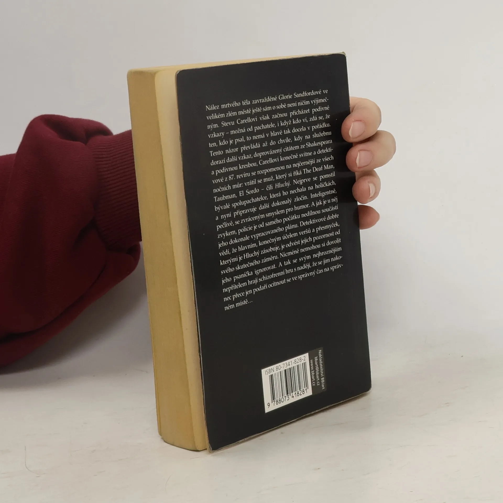 Nález mrtvého těla zavražděné Glorie Sandfordové ve velikém zlém městě ještě sám o sobě není ničím výjimečným. Stevu Carellovi však začnou přicházet podivné vzkazy – možná od pachatele, i když kdo ví, zdá se, že ten kdo je psal, to nemá v hlavě tak docela v pořádku. Tento názor převládá až do chvíle, kdy na služebnu dorazí další vzkaz, doprovázený citátem ze Shakespeara a podivnou kresbou, Carellovi konečně svitne a detektivové z 87. revíru se rozpomenou na nejčernější ze všech nočních můr: vrátil se muž, který si říká The Deaf Man, Taubman, El Sordo – čili Hluchý. Nejprve se pomstil bývalé spolupachatelce, která ho nechala na holičkách, a nyní připravuje další dokonalý zločin. Inteligentně, pečlivě, se zvráceným smyslem pro humor. A jak je u něj zvykem, policie je od samého počátku nedílnou součástí jeho dokonale vypracovaného plánu. Detektivové dobře vědí, že hlavním, konečným účelem veršů a přesmyček, kterými je Hluchý zásobuje, je odvést jejich pozornost od svého skutečného záměru. Nicméně nemohou si dovolit jeho psaníčka ignorovat. A tak se svým nejhroznějším nepřítelem hrají schizofrenní hru s nadějí, že se jim nakonec přece jen podaří ocitnout se ve správný čas na správném místě… První brožované vydání v českém jazyce.