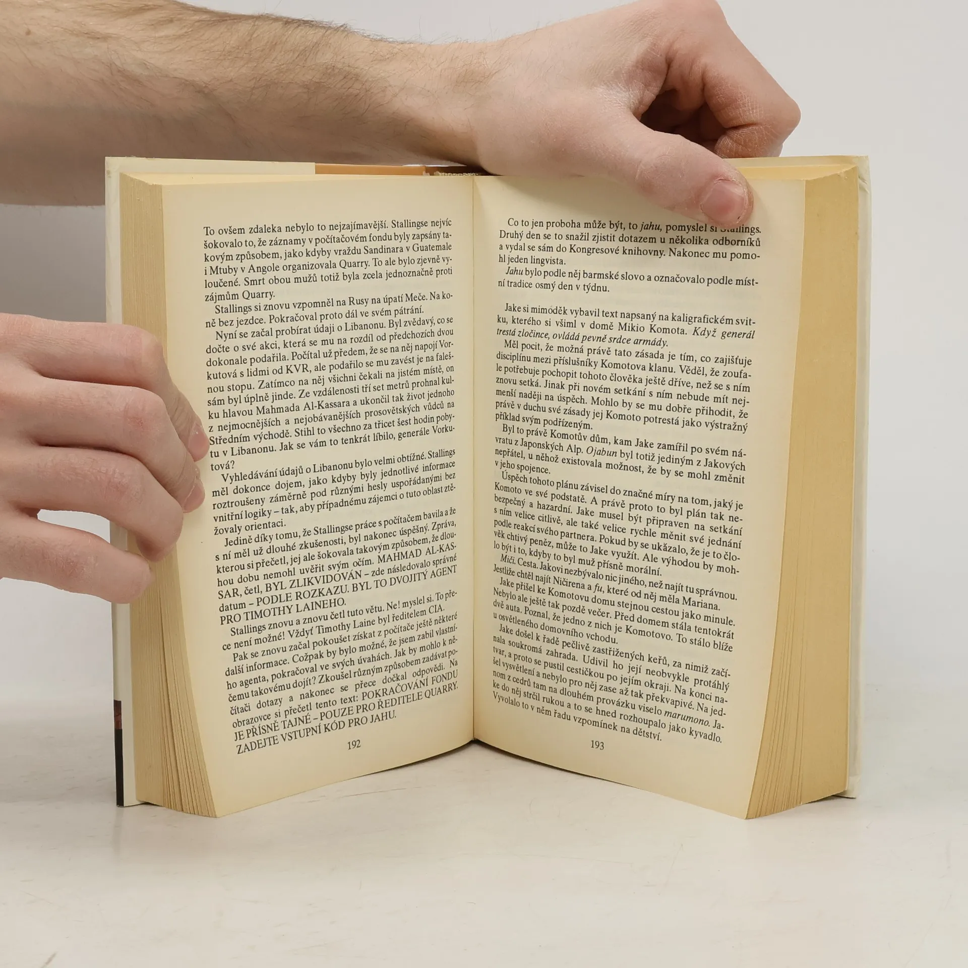 Tento napínavý špionážní román se odehrává v exotických místech, kromě Číny také v Japonsku, Hongkongu,Macau a na Tchaj.wanu, a líčí mocenské boje mezi japonskou mafií, agenty CIA a KGB a představiteli mocných průmyslových koncernů, ale nevyhýbá se ani romantice a milostným vztahům